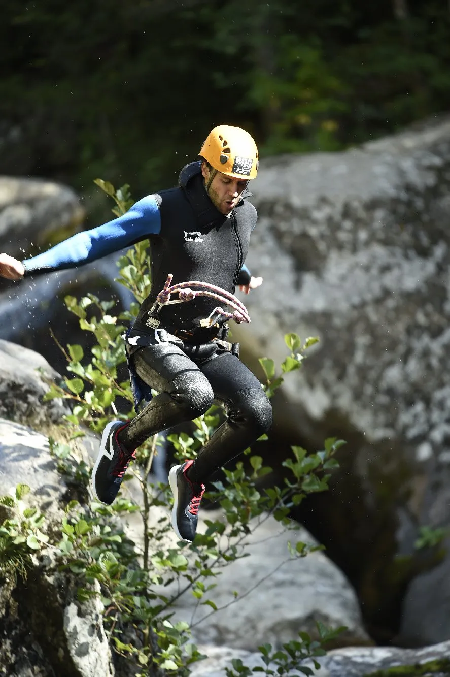 Canyoning is a progression along the bed of a torrent. Meaning you can play in white water currents, jump into the deepest pools or use abseiling techniques for the highest projections, slide down natural slides, swim, explore or defy the waterfalls for a natural massage. Aquatic adventure is a type of canyoning, the only difference is in the use or not of technical equipment. It's a less technical activity but where everyone does their own thing: the more aquatic spend more time in the water, others, less comfortable with jumps for example, are able to avoid obstacles using the banks. In short, it's an activity that's perfect for families or groups of varying levels because everyone will find something they like.