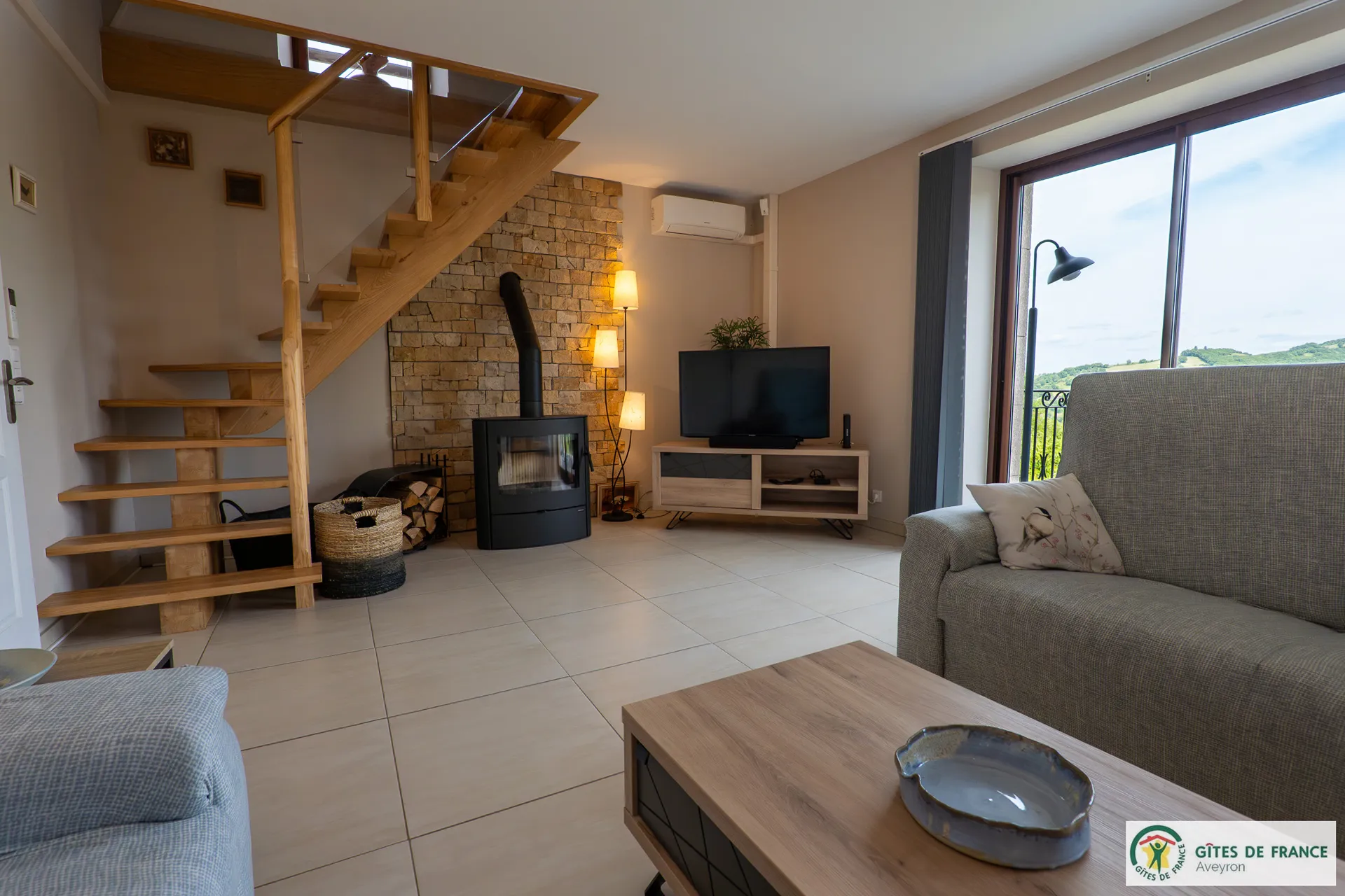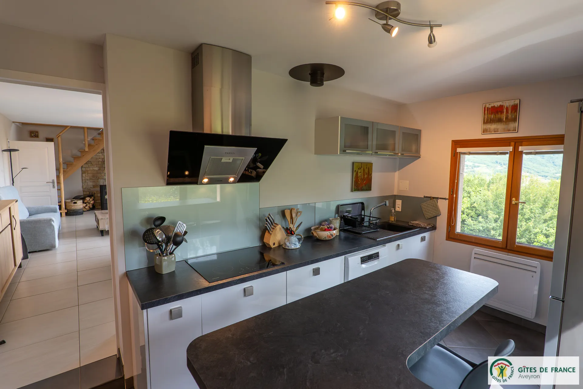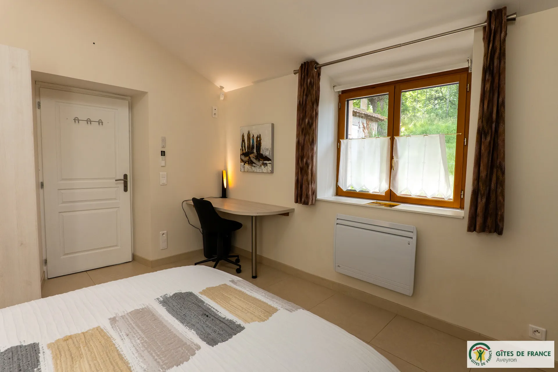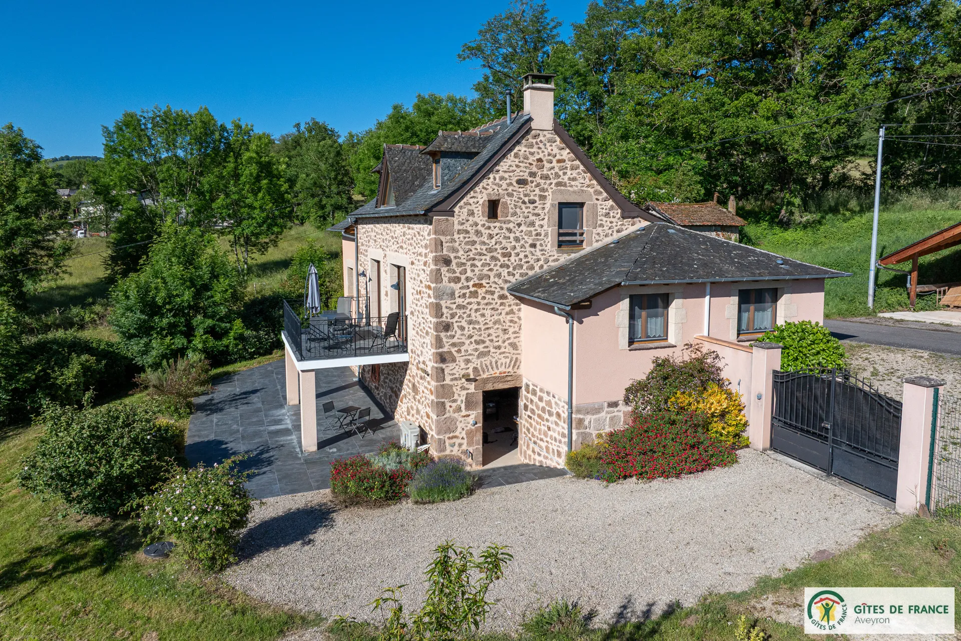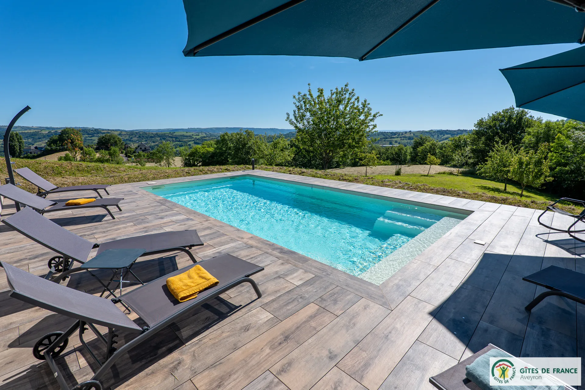 Independent cottage, of 130m2 with reversible air conditioning and private swimming pool enjoying a magnificent view. Not far from a hamlet, in the countryside 15 km from Conques, between the Vallon de Marcillac and the Lot Valley. 3 bedrooms (3 beds 160 and 1 bed 90), 2 shower rooms and 1 bathroom, fully equipped kitchen (induction hob, electric oven and M-W, fridge-freezer, dishwasher...), living room/dining room (sofas, television, wood stove), electric heating, laundry (washing machine, dryer), 2 private unenclosed terraces of 60m2 each, 1 enclosed terrace (14m2), private enclosed land (1 ha 50), private heated (from mid may to mid-september) swimming pool (8x4) , private covered carport for 3 cars, patio furniture, BBQ, bicycle room, electric charging station (paid service: 20 eurocents / kw)