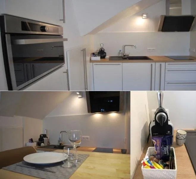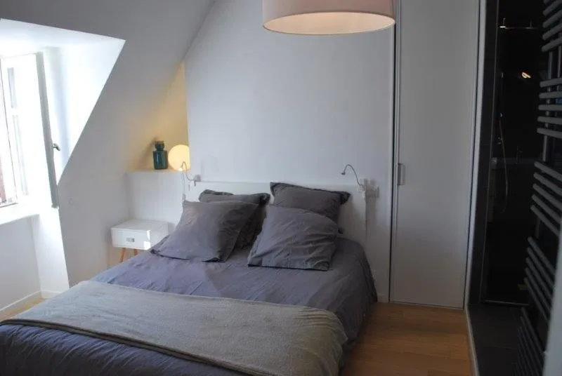 This apartment has been entirely renovated with a contemporary decoration, ideally located in the city center of Rodez, southern exposure, it offers an open view upon the prefecture and the cathedral. Located in the heart of the city with all shopping facilities, restaurants, museums and activities... Ideal for tourists and business travellers. Located on the 3rd floor, with an entirely equiped open kitchen, a comfy living room, a bedroom with a 160 bed and an open bathroom with independant toilets. THE KITCHEN : multifunction oven microwave, induction cooker, dishwasher, fridge, washing machine, high table and bar stool, cooking accessories and dishes... THE LIVING ROOM : 2 spots sofa, armchair, coffee tables, TV... THE BEDROOM : 160x200 bed, closet, wardrobe, TV... THE BATHROOM : open on the bedroom, italian shower, vanity unit, hair-dryer, towel-dryer, welcoming products... independant toilets. Other accessories : Aspirator, iron and ironing table, fan, WiFi, sheets, towels, cleaning products, first aid kit... Card of access to the covered parking "Foch" located at 150m from the apartment, included in the initial rent.