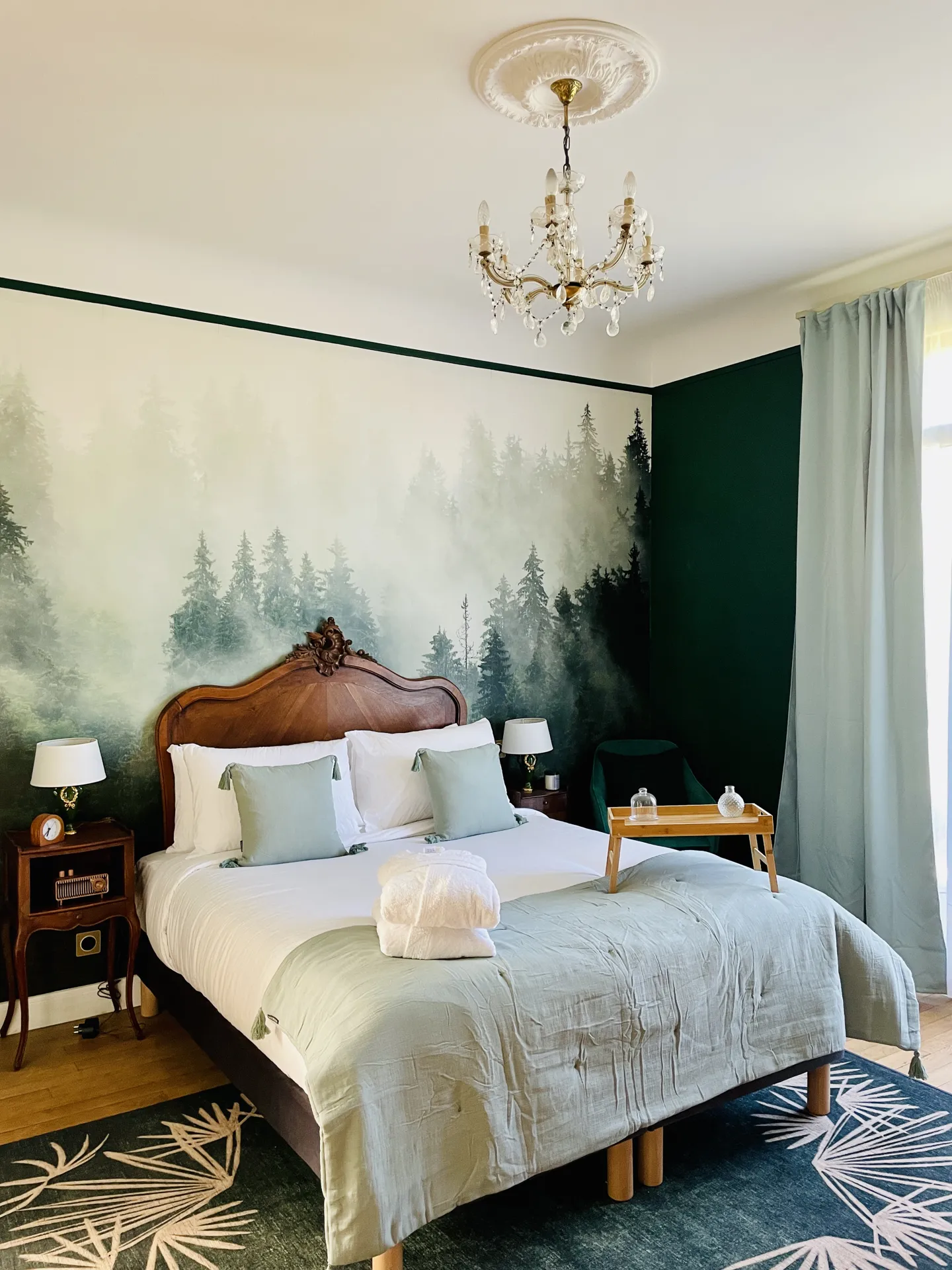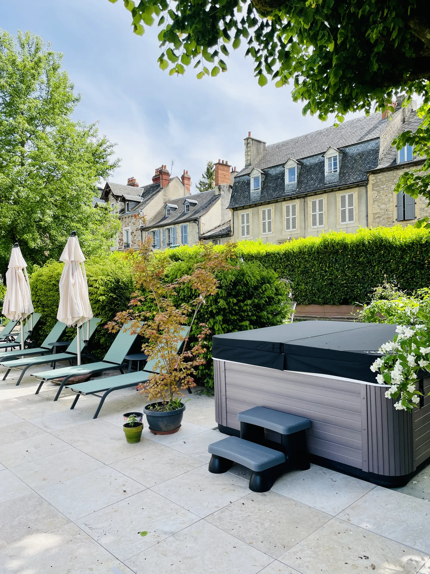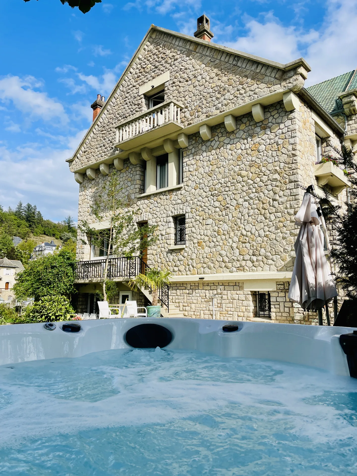 Outdoors, a heated pool bathed in light invites you to relax in a serene, green setting, as does the jacuzzi, open year-round. Inside, the spaces are generous and bright, offering a friendly and relaxing atmosphere. Five bedrooms, each with their own character, visual and olfactory identity. Each room features a private bathroom, a Nespresso coffee machine, a kettle, a mini-fridge, a smart TV, Wi-Fi, a smart speaker, a private balcony, and a personalized decor oozing with charm. In the basement, a fully equipped gym, a billiard room, and soon a massage room and a changing room.