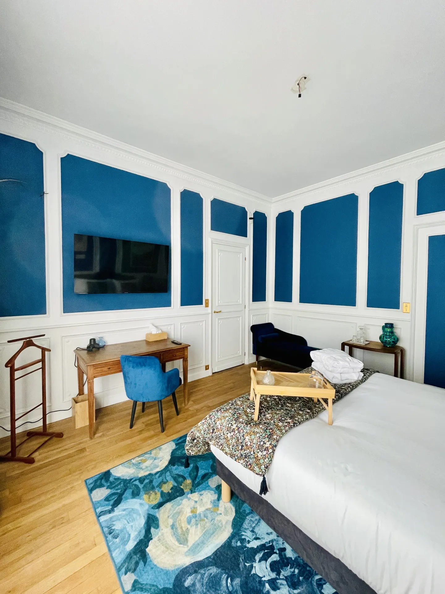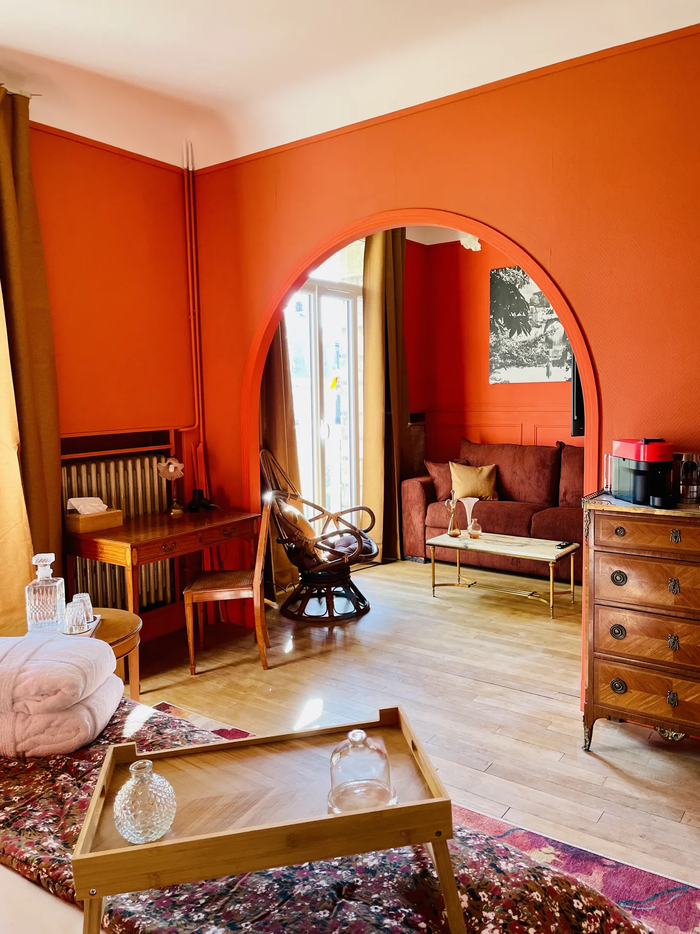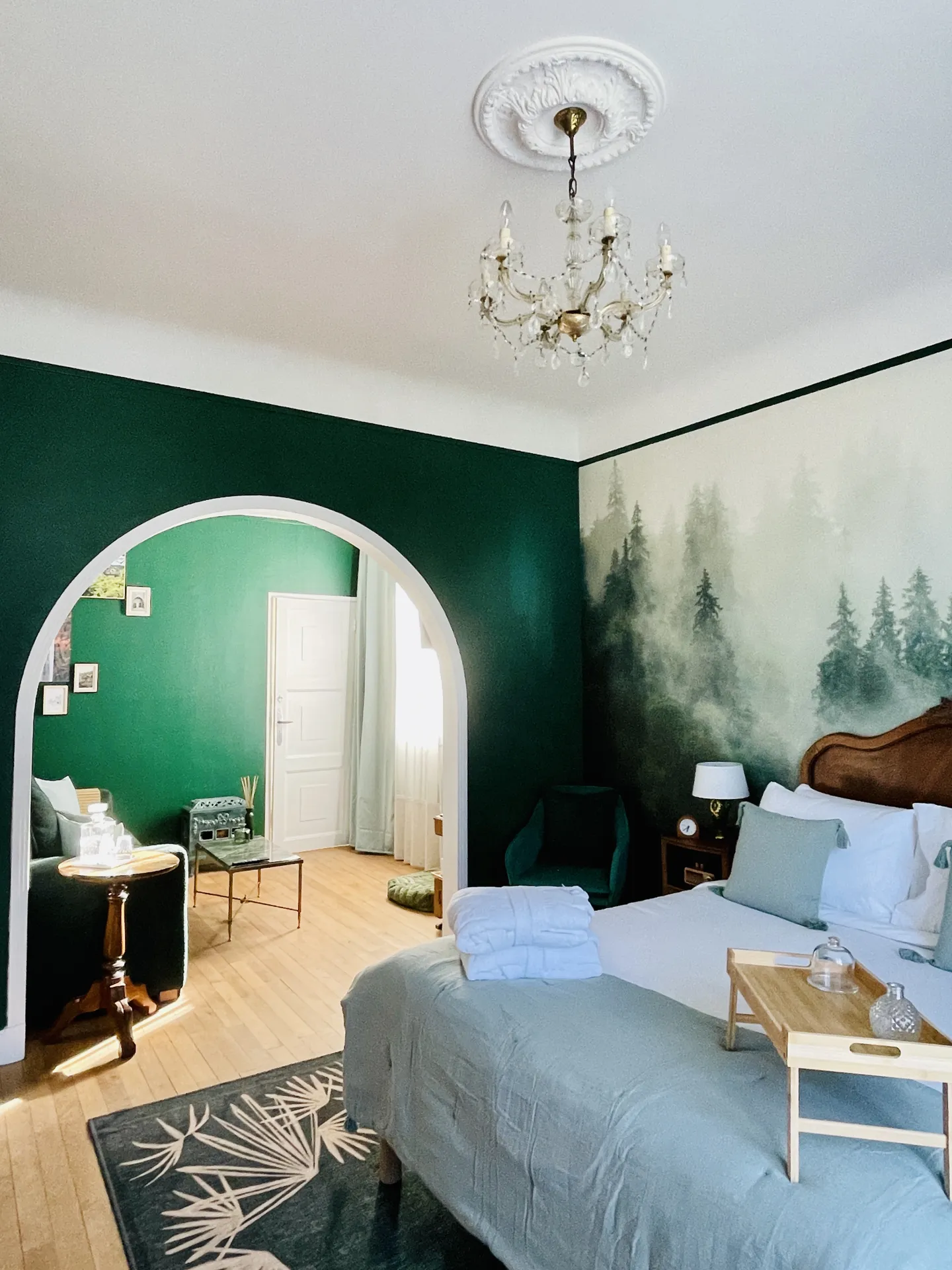 Outdoors, a heated pool bathed in light invites you to relax in a serene, green setting, as does the jacuzzi, open year-round. Inside, the spaces are generous and bright, offering a friendly and relaxing atmosphere. Five bedrooms, each with their own character, visual and olfactory identity. Each room features a private bathroom, a Nespresso coffee machine, a kettle, a mini-fridge, a smart TV, Wi-Fi, a smart speaker, a private balcony, and a personalized decor oozing with charm. In the basement, a fully equipped gym, a billiard room, and soon a massage room and a changing room.