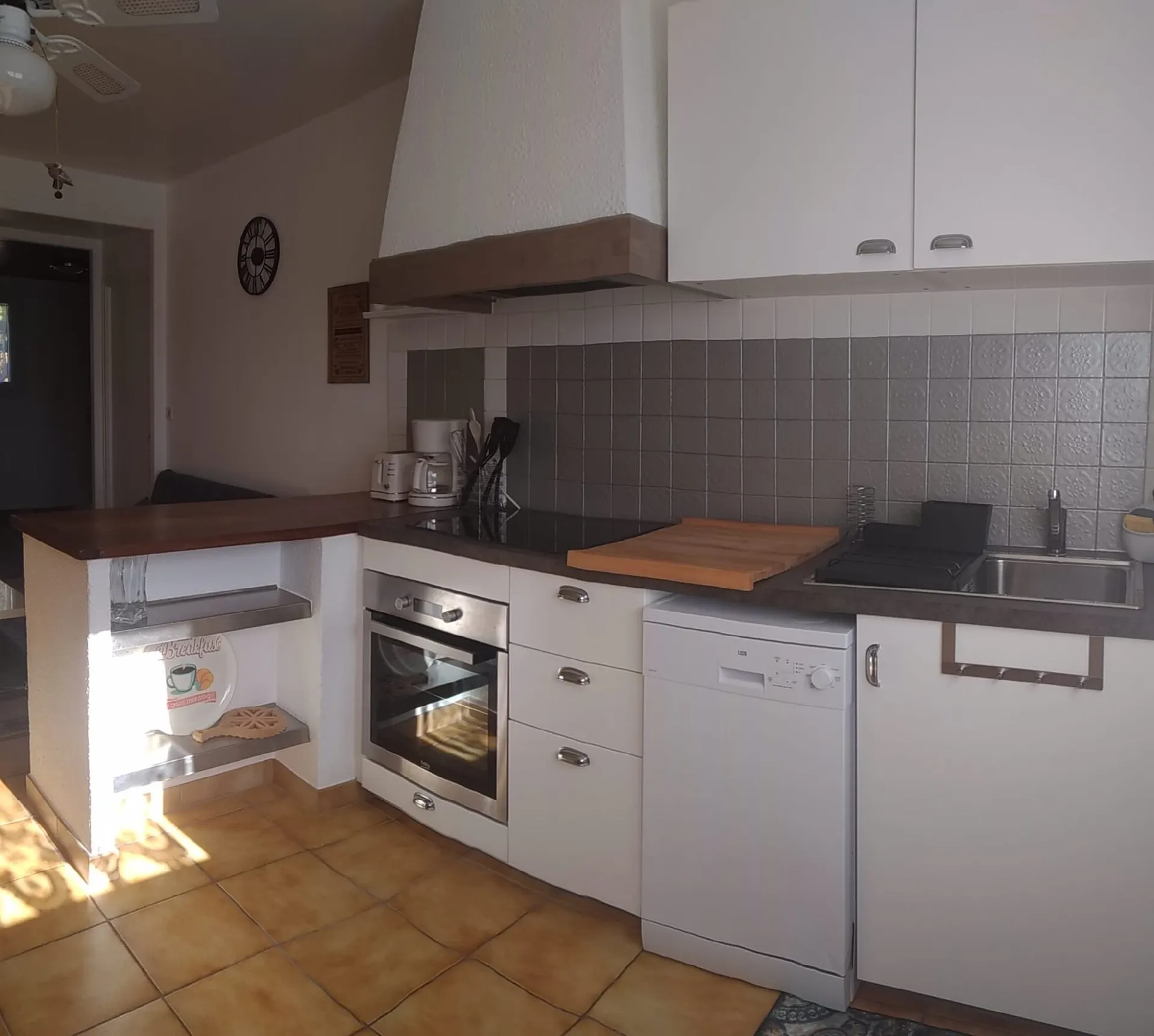 American kitchen fully equipped (fridge, dishwasher, microwaves). Tv, Wifi. 1 bedroom with 1 bed for pax. 1 bedroom with bed 120. Bathroom with shower, laundry room with washing machine and dryer. Terrace.