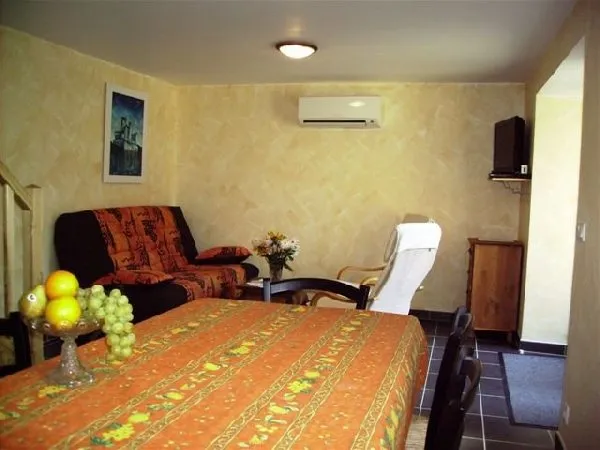 Comfortable cottage 4 people fully air conditioned with internet access in an old farmhouse.The gîte is situated 300 m from the village of Belcastel which is classed as one of the plus beaux villages de France (most beautiful villages in France). The gîte is on two levels in the heart of the old farm and was completely renovated in 2009. Cleaning, linen hire, microwave, washing machine, television+DVD, electric heating, terrace, barbecue, shops and services close by.