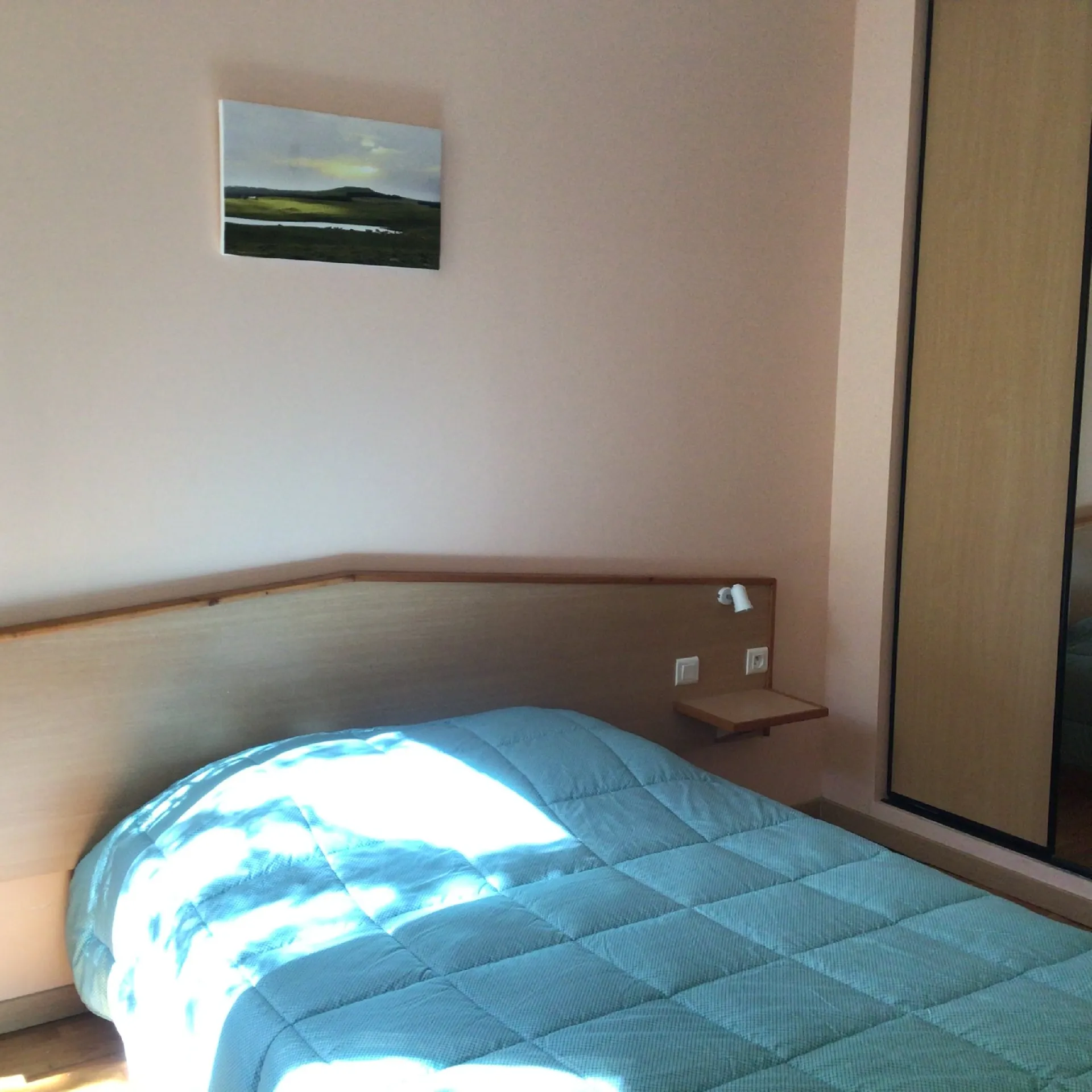 Situated in "le Bois aux Biches" complex, accommodation on the ground floor for 4 people: equipped fitted kitchen (microwave), lounge with sofa, TV, 2 bedrooms, 1 with double bed and 1 with 2 bed 90. Washing machine. 2 shower rooms. Terrace, garden, garden furniture, barbecue. Calm setting. Wood fired central heating. Pets accepted.