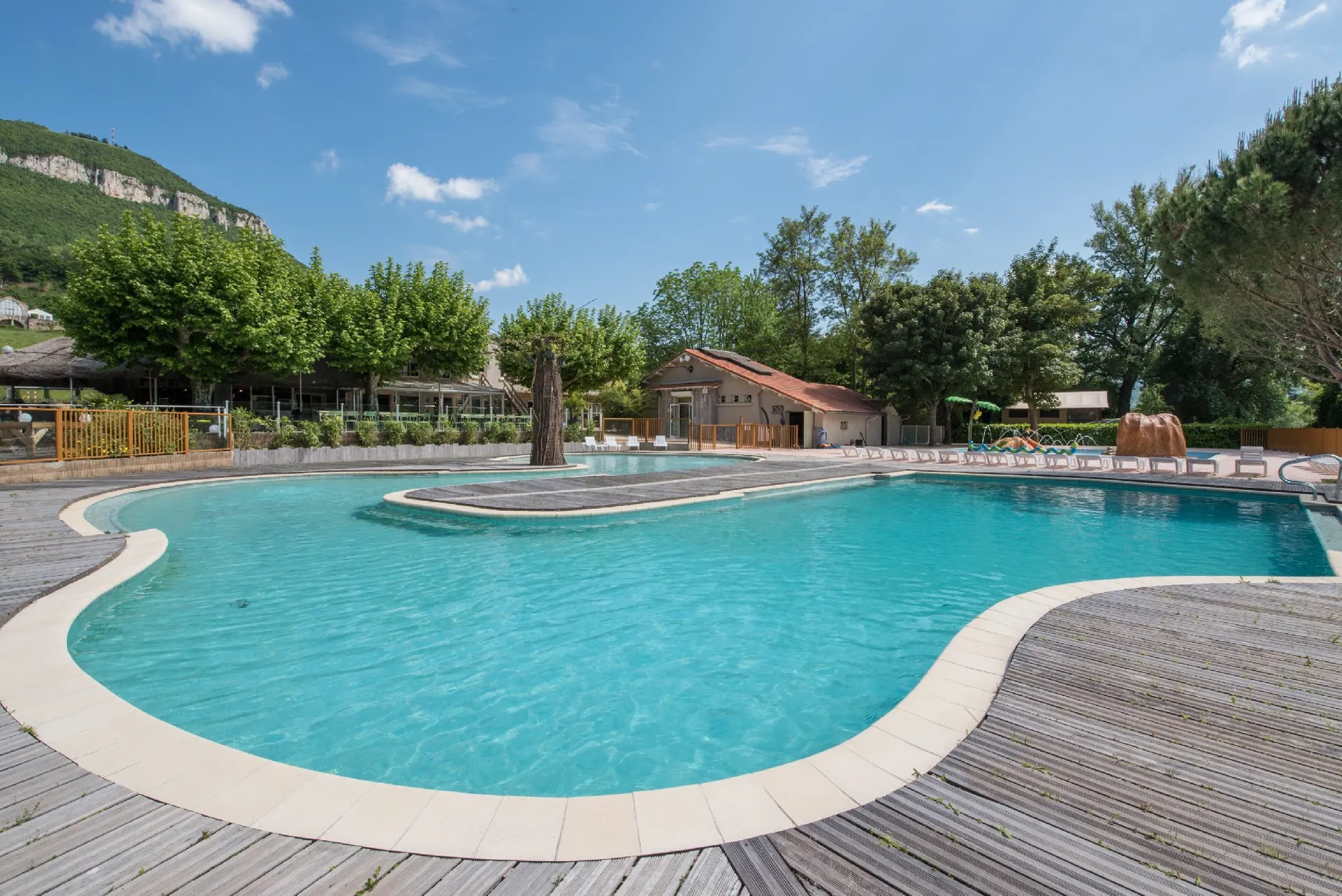 The campsite is situated in 15 acres of grounds shaded by secular trees at the start of the Gorges du Tarn, near the Parc Régional des Grands Causses. It is close to the famous Millau Viaduct (the world's highest) and wether you are looking for the excitement of extreme sports or more gentle relaxation, this area has all you can wish for.Soothed by the Tarn and dominated by the Parc Régional des Grands Causses, our campsite with its 12 acre park of century old trees has been thought out for your well being. A 250m² swimming pool, day and night entertainments and its mini club for children from 6 to 12 years old.