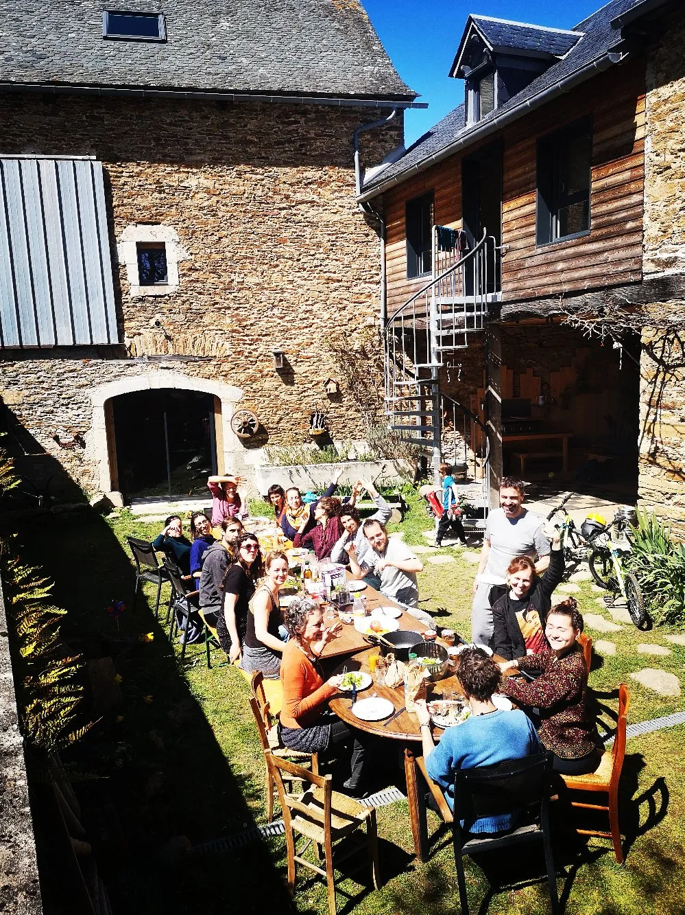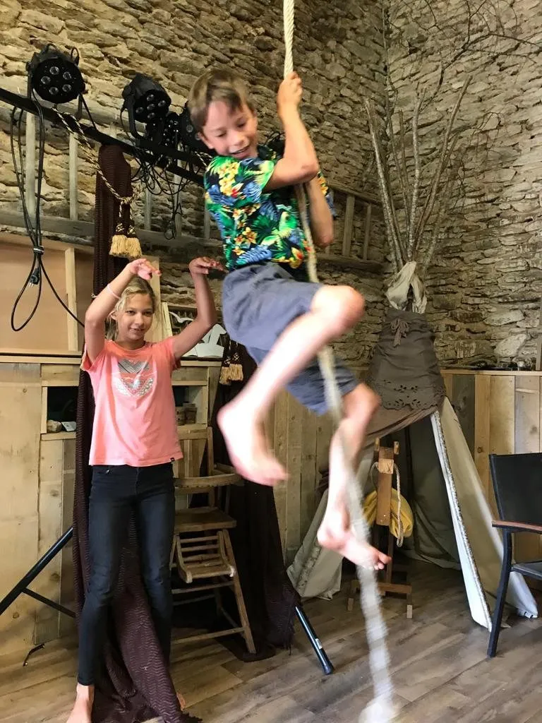 The "Grange" was designed to receive both large families, reunions with friends (bachelorette party, etc.) and to receive artist residencies or workshops (dance, theater, yoga, etc.). It also allows the wedding reception in complete privacy. This loft of 80 square meters by 8 meters high is composed of a living room / living room dining room of about fifty square meters which contains an open kitchen. This space is completely modular: Tables and sofas can be moved or taken out to free up space for a dance party, karaoke, a small private concert, a yoga workshop or any other activity adapted to the place. The "Grange" includes 4 double sleeping areas, as well as a stretched net, two hammocks and two sofa beds.