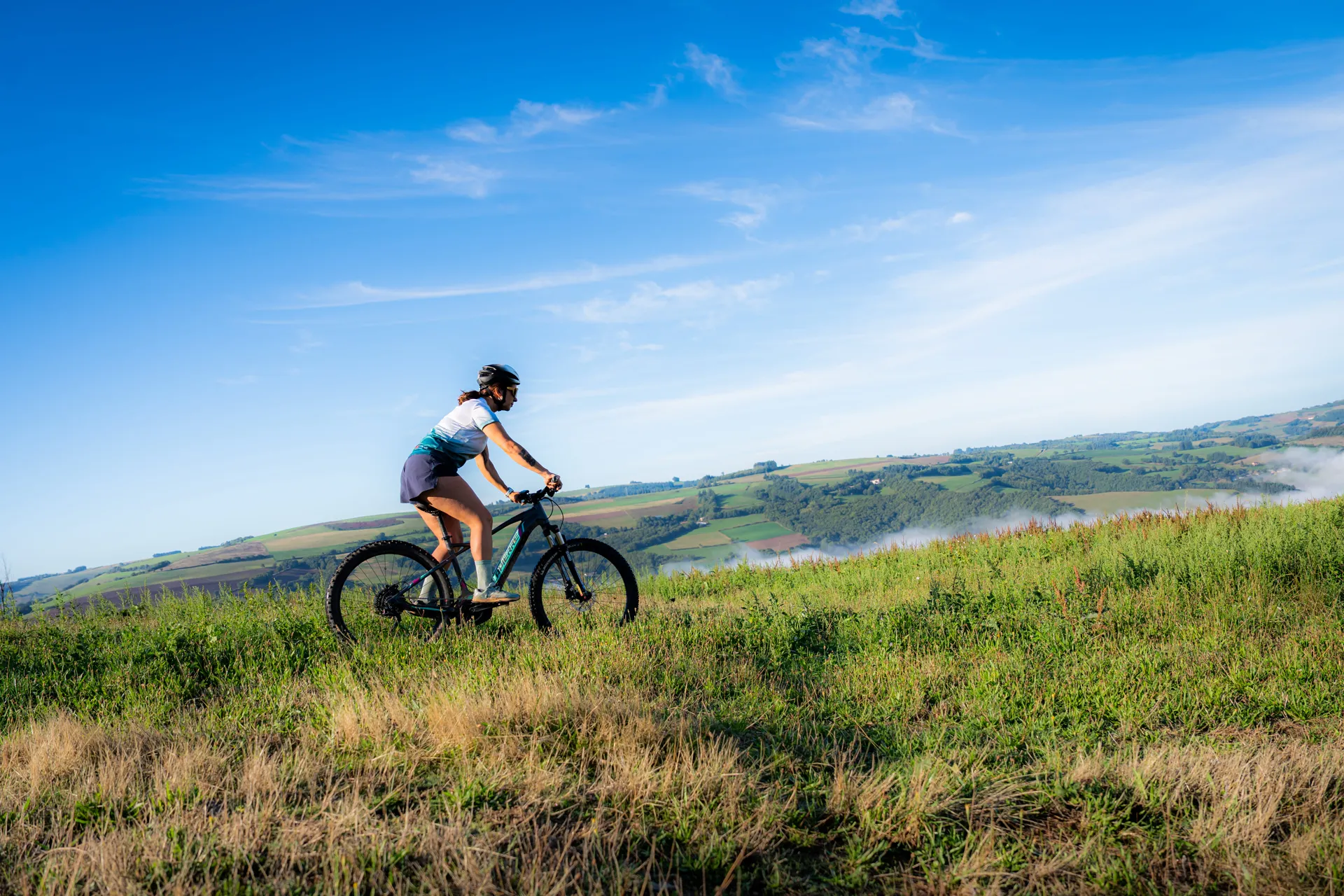 Once through the gates of the château de Coupiac, the adventure begins: crowned by the ascent to Saint-Laurent and the superb panorama that unfolds from the hamlet. A climb through the undergrowth, followed by the final single-track descent, are the other main chapters of this epic mountain-biking adventure through the soothing countryside of the Sept vallons.
