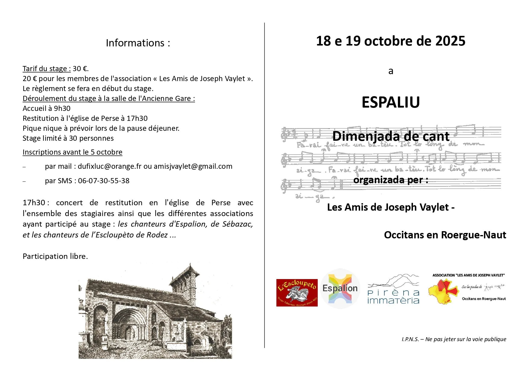 Stage de chants occitans12500 Espalion lat. 44.517 - lon. 2.76727