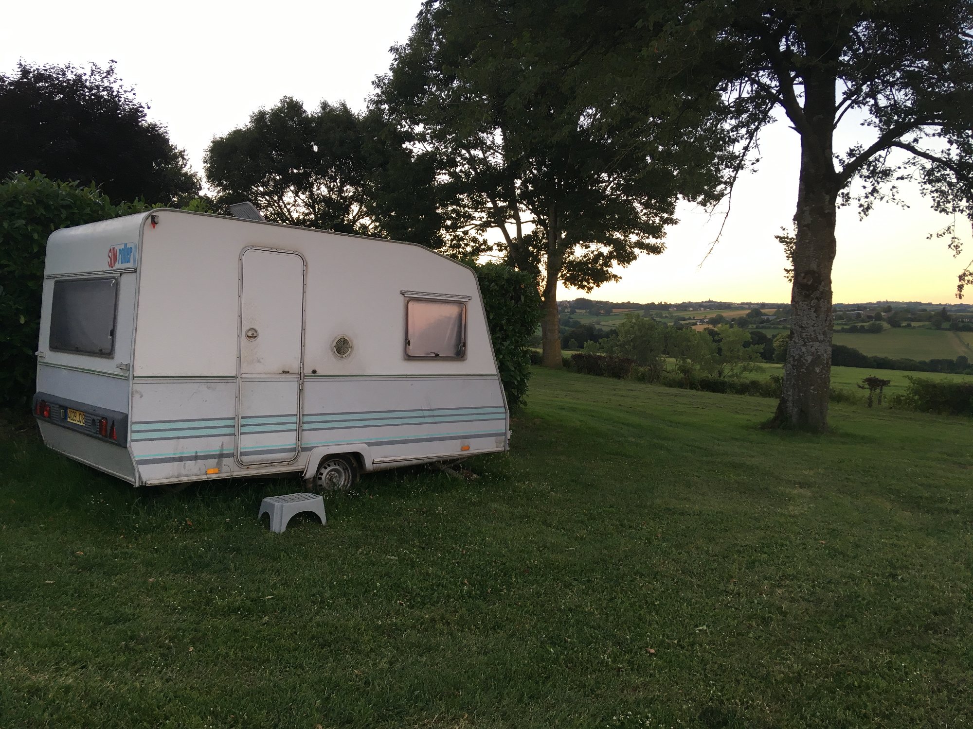 Camping de 6 parcelas. Terreno tranquilo y parcialmente sombreado con vistas panorámicas de las cañadas y del campo de Ségala.