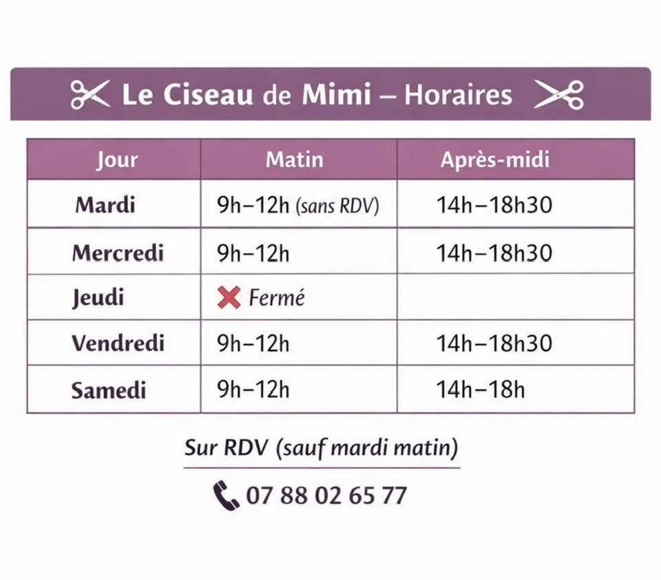 Le ciseau de MiMi vous propose de découvrir le Hair SPA sur rendez vous au 07 88 02 65 77. C'est un réel moment de détente avec shampoing et soins traitant, massage du cuir chevelu, pluie d'eau chaude, crème pour les mains et séchage/ coiffage.