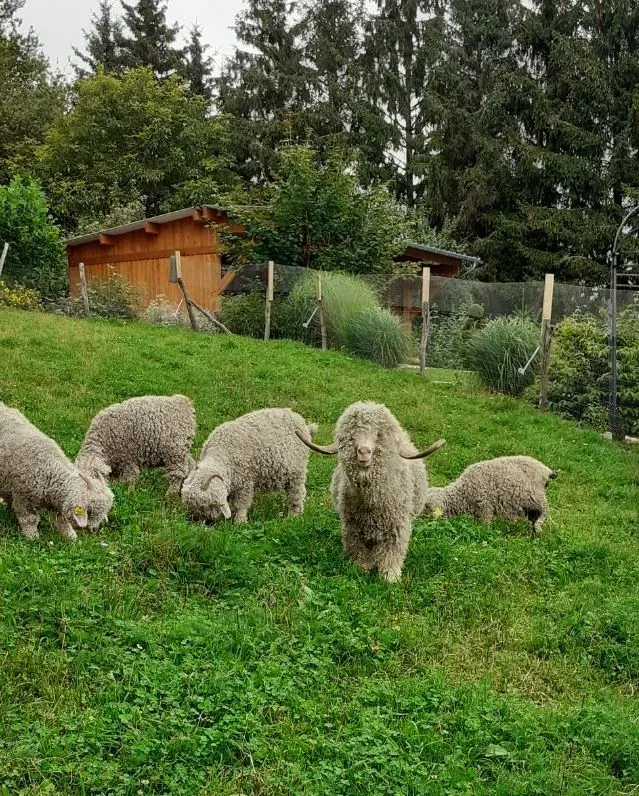 Visite guidée pédagogique de l'élevage de Chèvres Angora et découverte de la transformation de la laine.