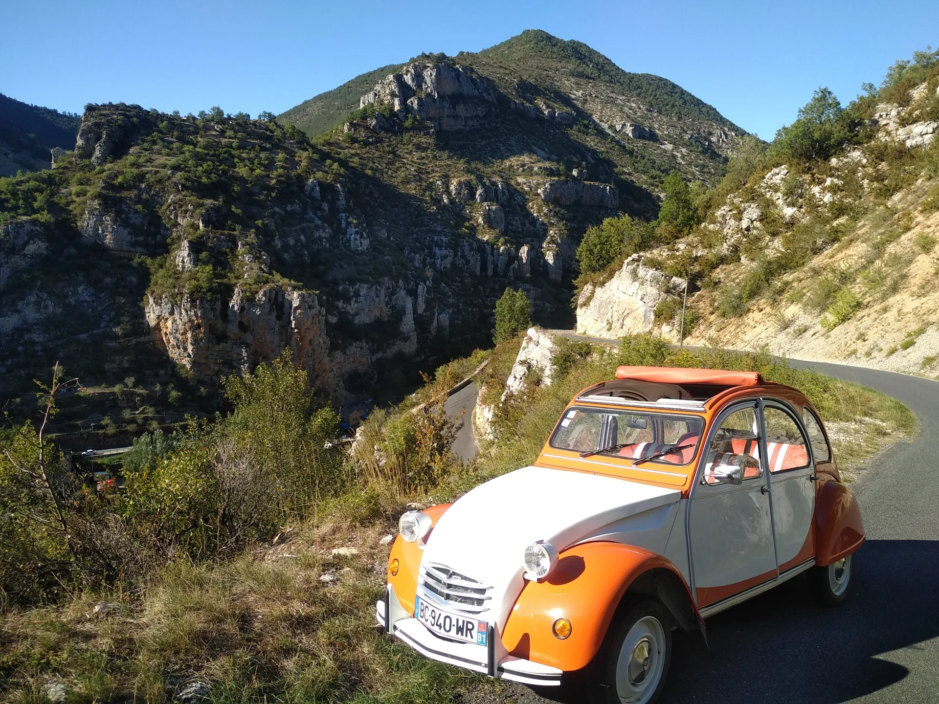Pour la découverte des Gorges, nous vous proposons une superbe balade en 2CV avec Laurent.