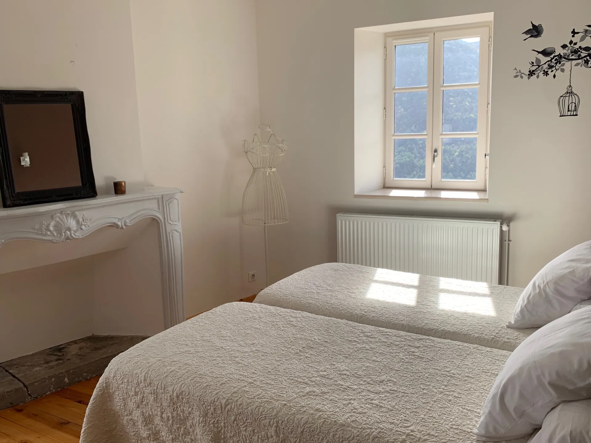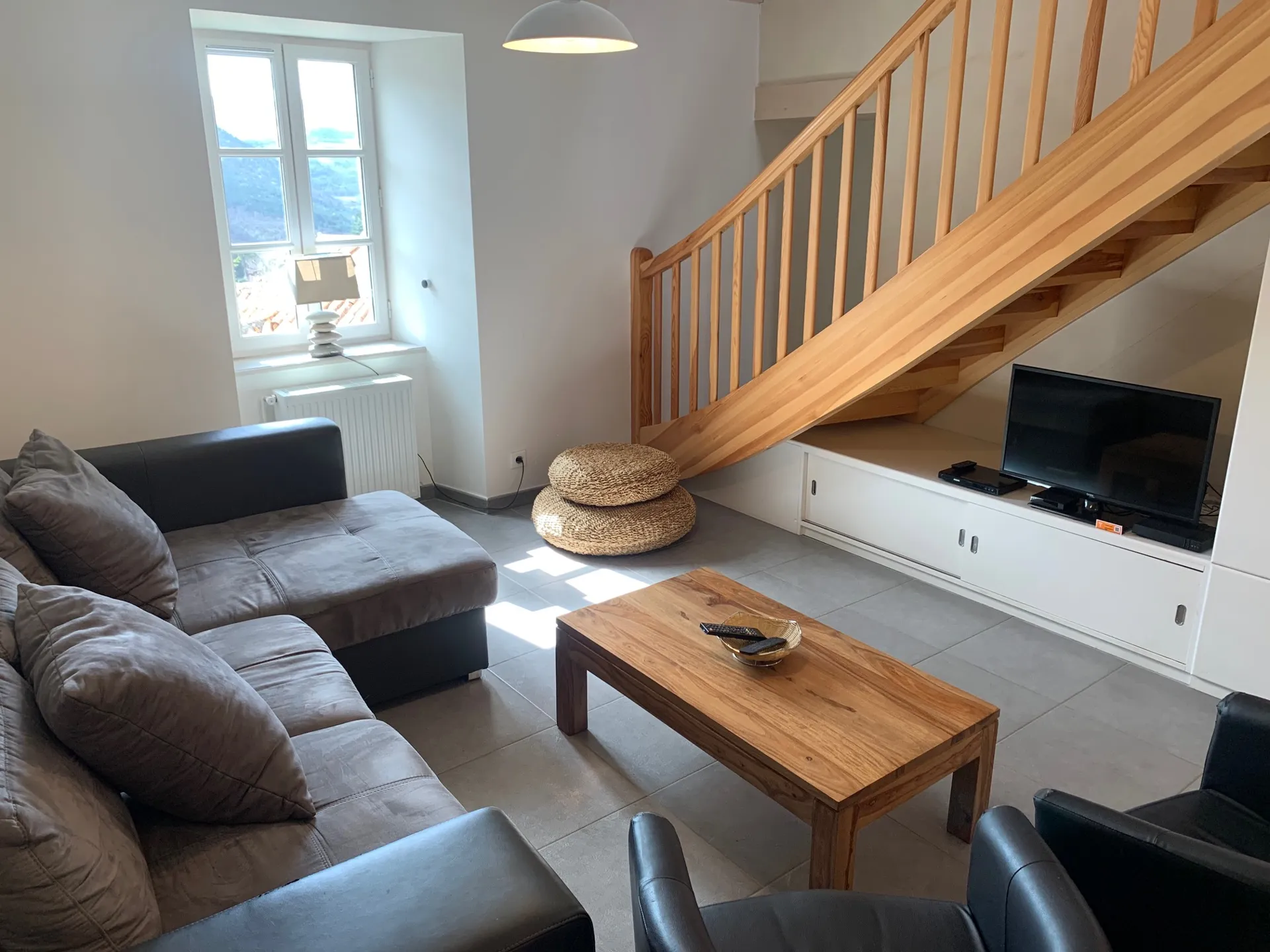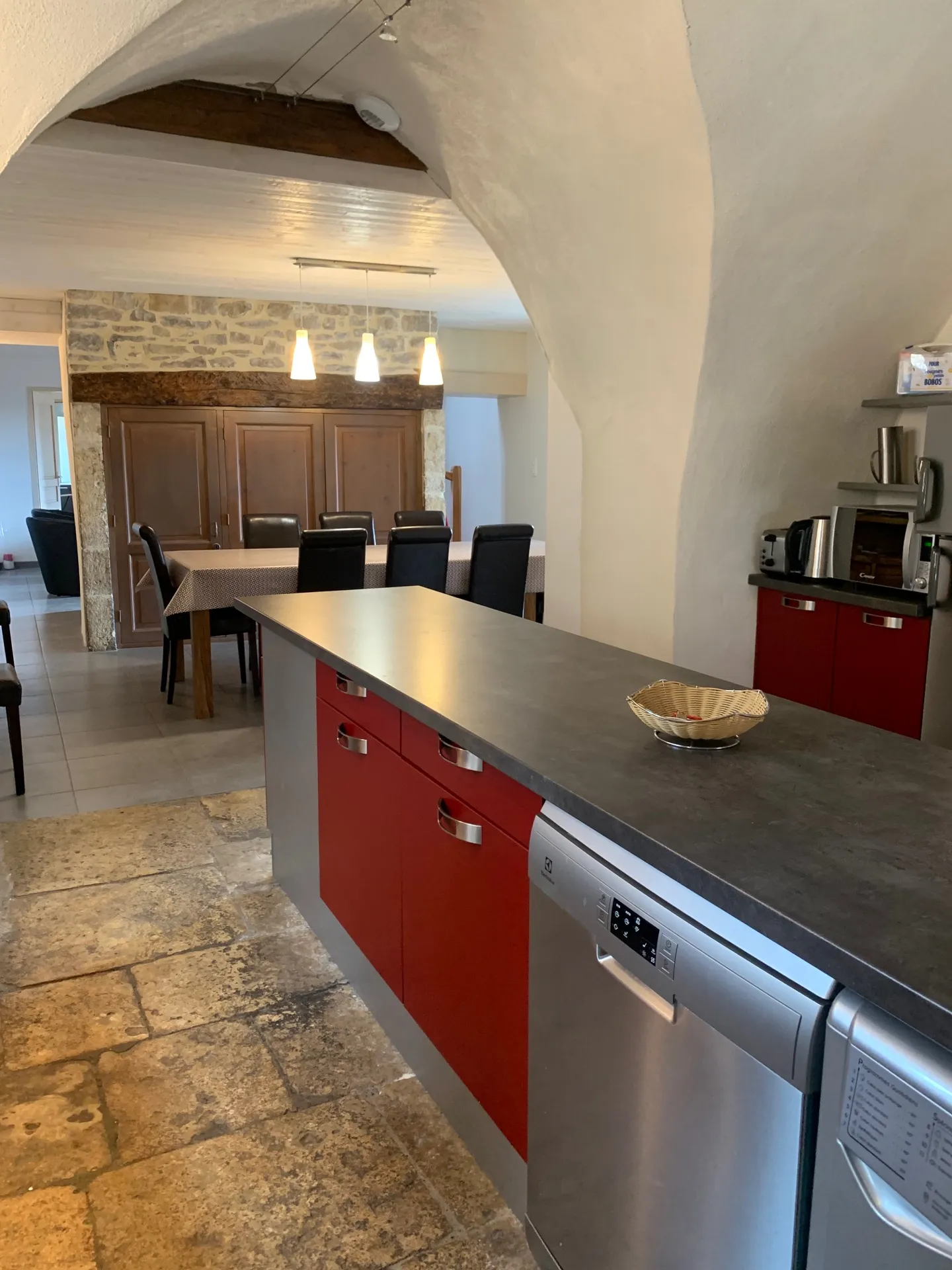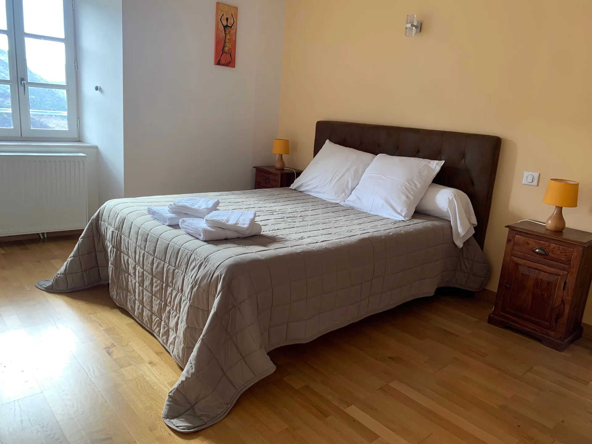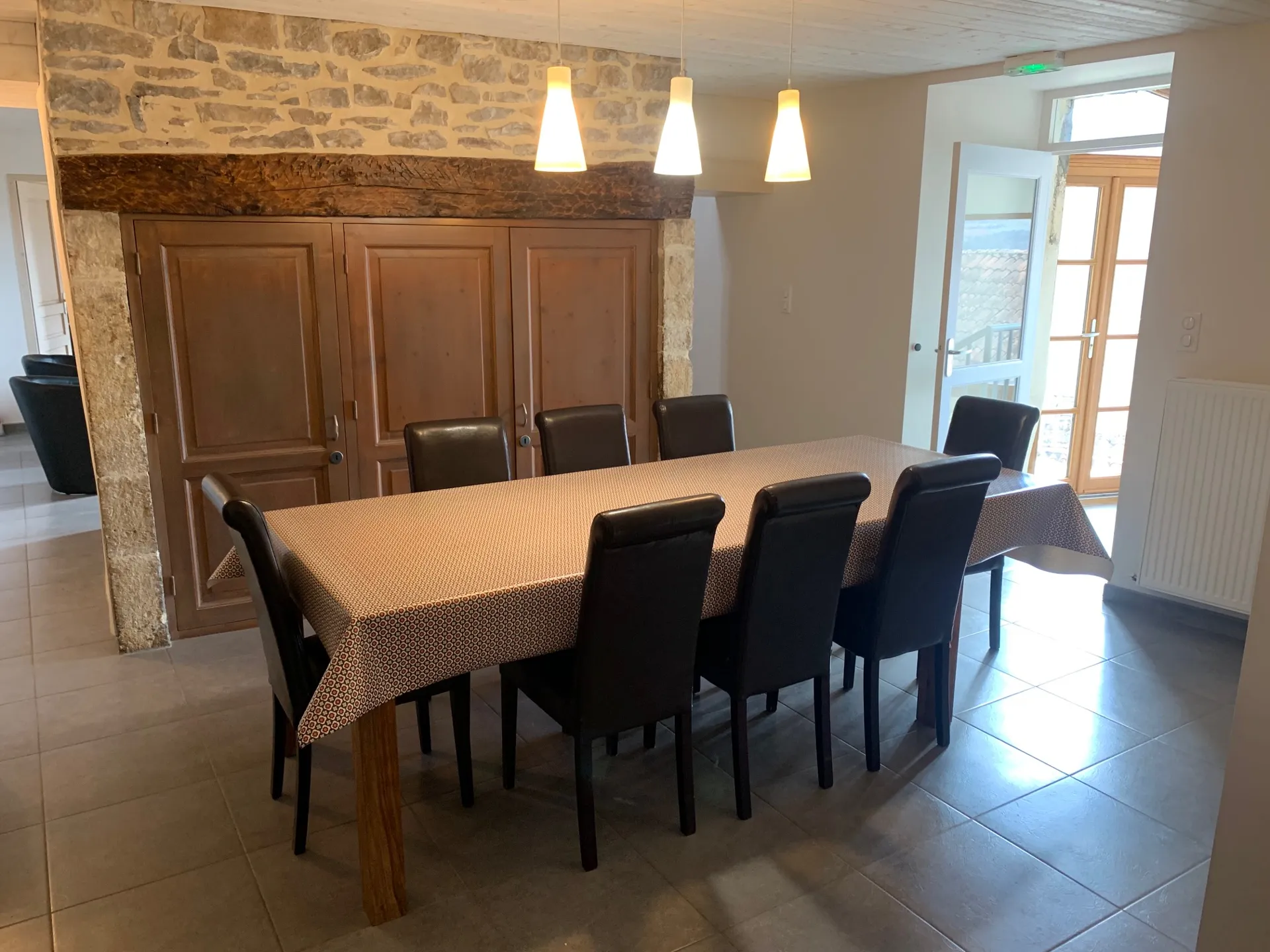Maison de caractère spacieuse et pierres apparentes, ancien presbytère entièrement restauré en conservant l'histoire et le charme du lieu pouvant accueillir 10 personnes.Maison mitoyenne sur 3 niveaux. 5 chambres (2 x 140, 6 x 90), salles d'eau et de bain, cuisine, lave-vaisselle, micro-ondes, lave-linge, séjour, salon, télévision, wifi, chauffage, terrasse, jardin clos privé, salon de jardin, barbecue/plancha, draps fournis. En rez de jardin, une grande salle voutée, une cuisine d'été, et un WC.