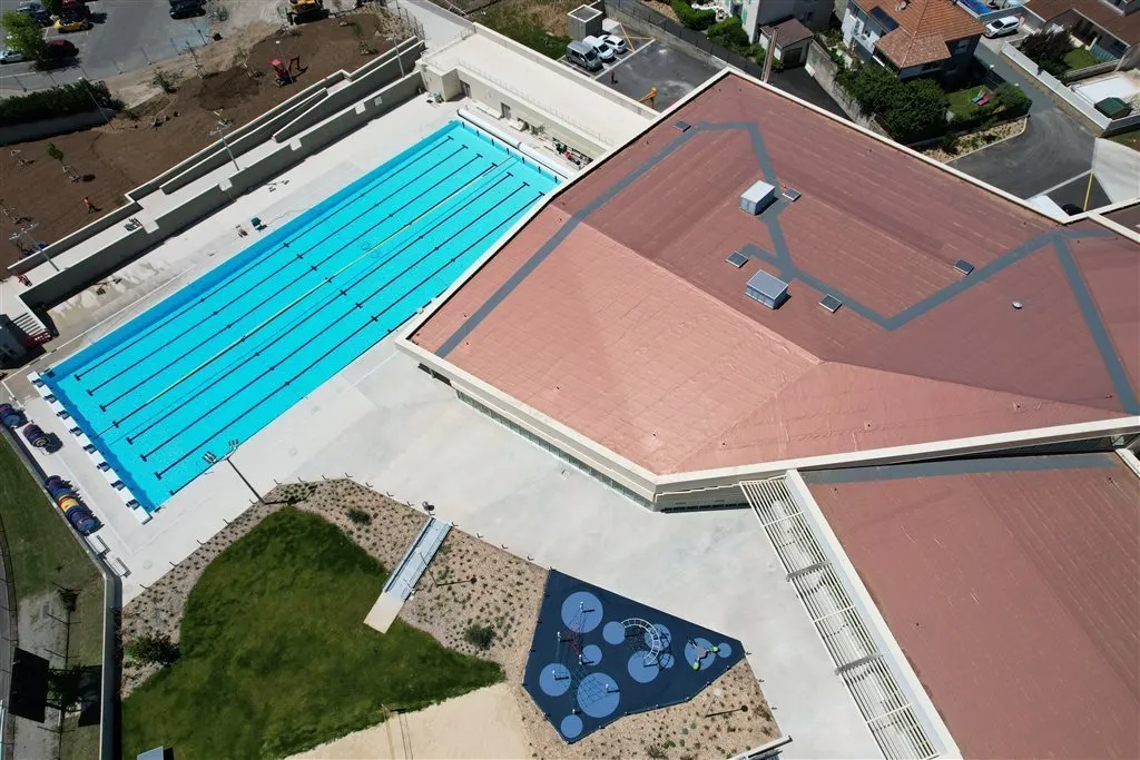un centre aquatique comprenant un bassin sportif extérieur et 2 bassins couverts : éducatif (312,5m2) et ludique (150m2)
