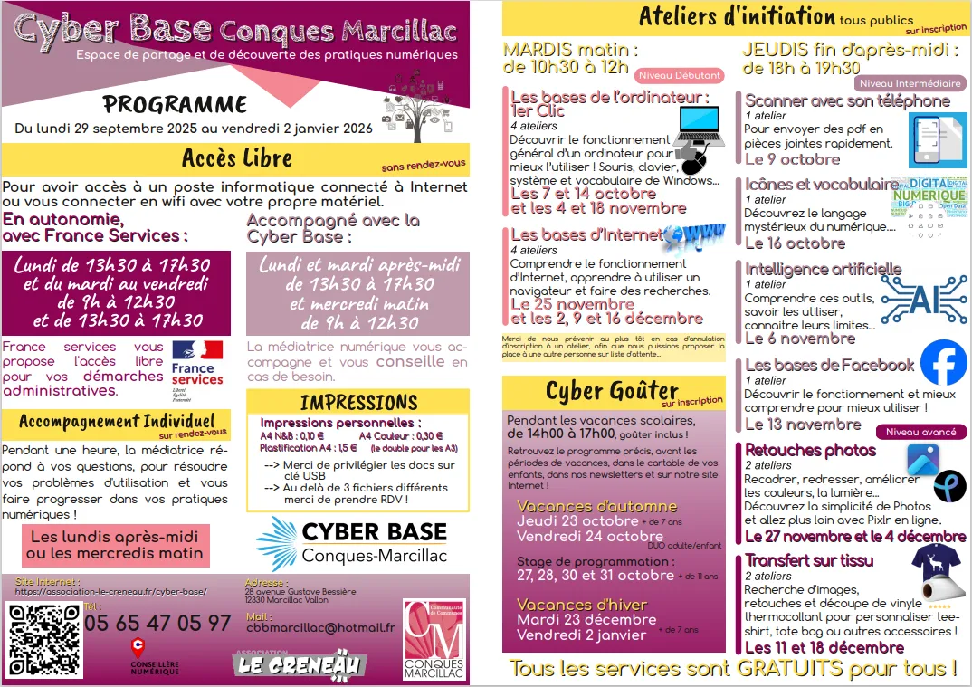 Activités à la cyber base12330 Marcillac-Vallon lat. 44.477 - lon. 2.45553