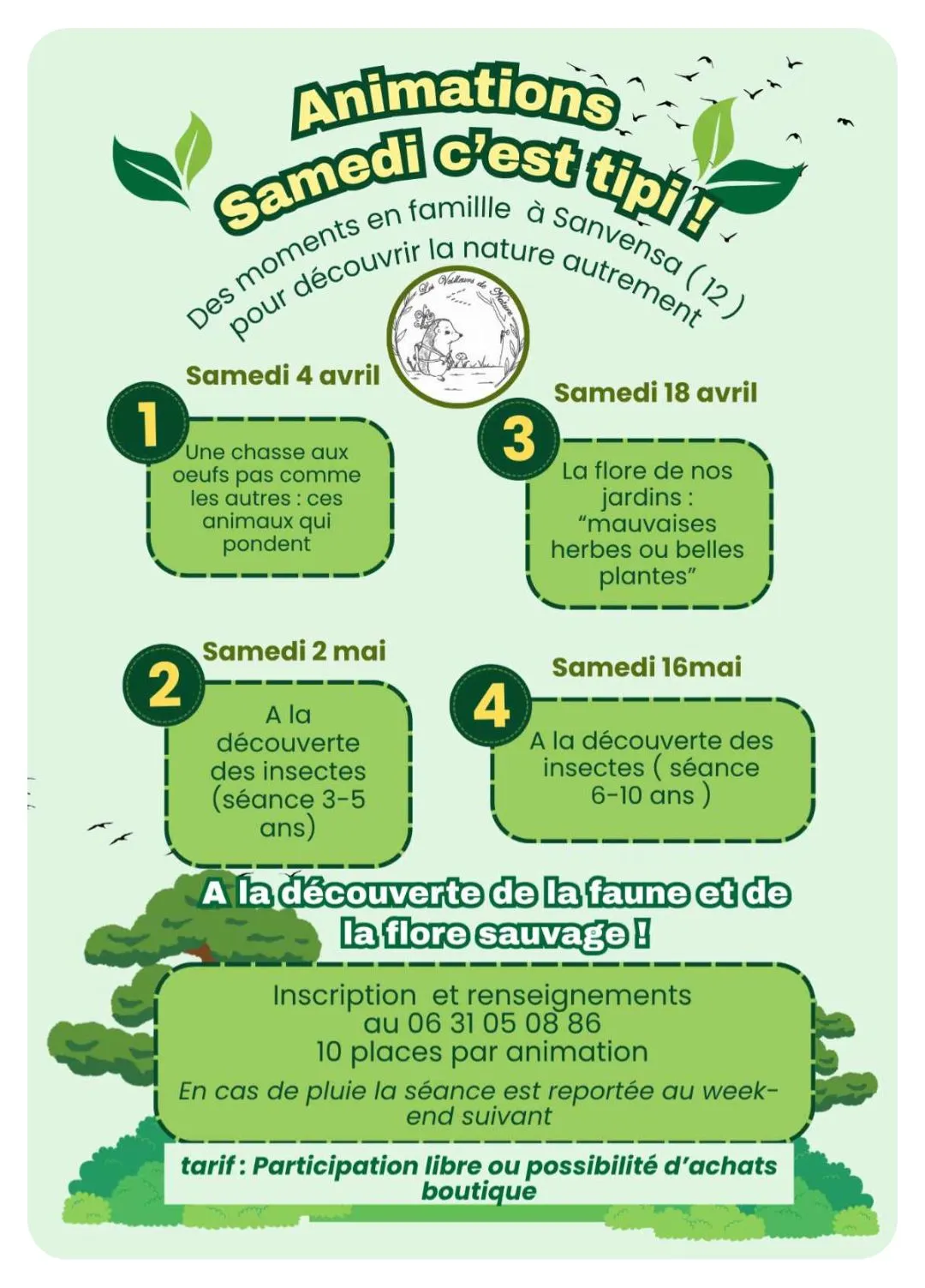 . Samedi 2 mai - A la découverte des insectes (séance 3 - 5 ans).