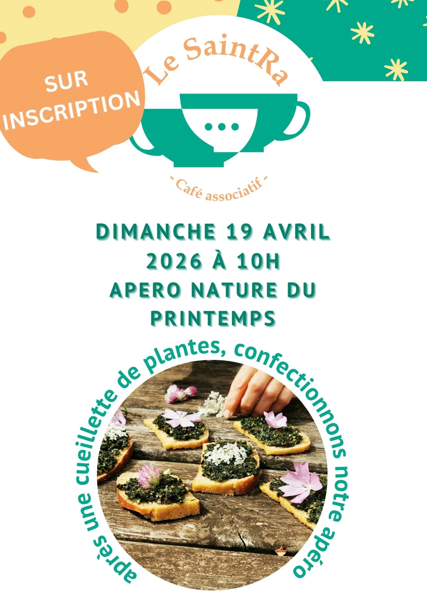 Par le café associatif de Sainte Radegonde. Un apéro nature confectionné à partir de plantes sauvages comestibles.