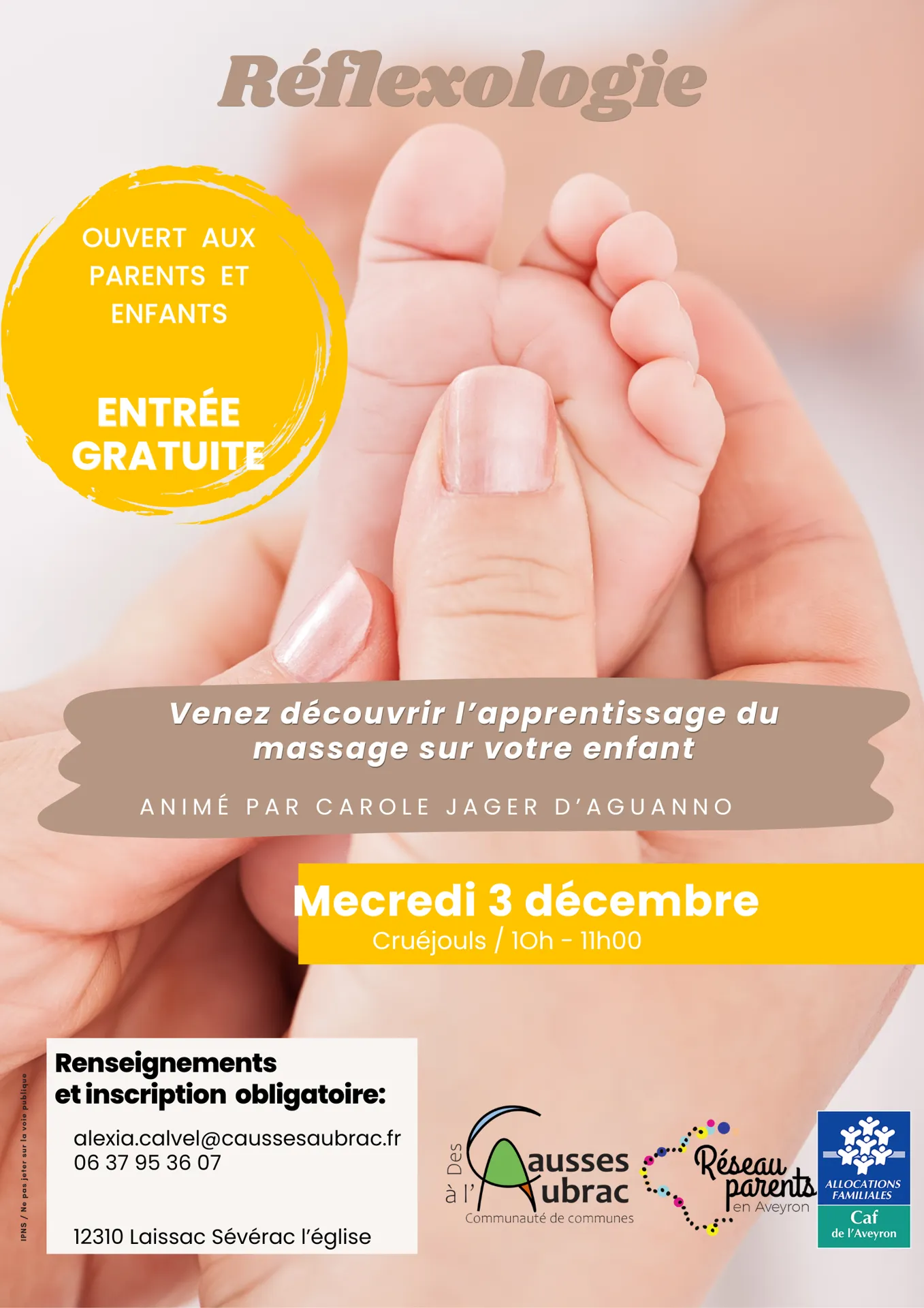 Venez découvrir l'apprentissage du massage sur votre enfant. Animé par Carole D'aguanno Jager. Attention : place limitées. Sur réservation : 06 37 95 36 07