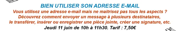 10h à 11h30. Atelier numérique sur ordinateurs et tablettes animé par le Cantou. Vous utilisez une adresse mail mais vous ne maitrisez pas tous les aspects ? Tarif : 7,50€ . Renseignements et inscription au 05 65 58 15 25 ou 06 75 73 33 57.