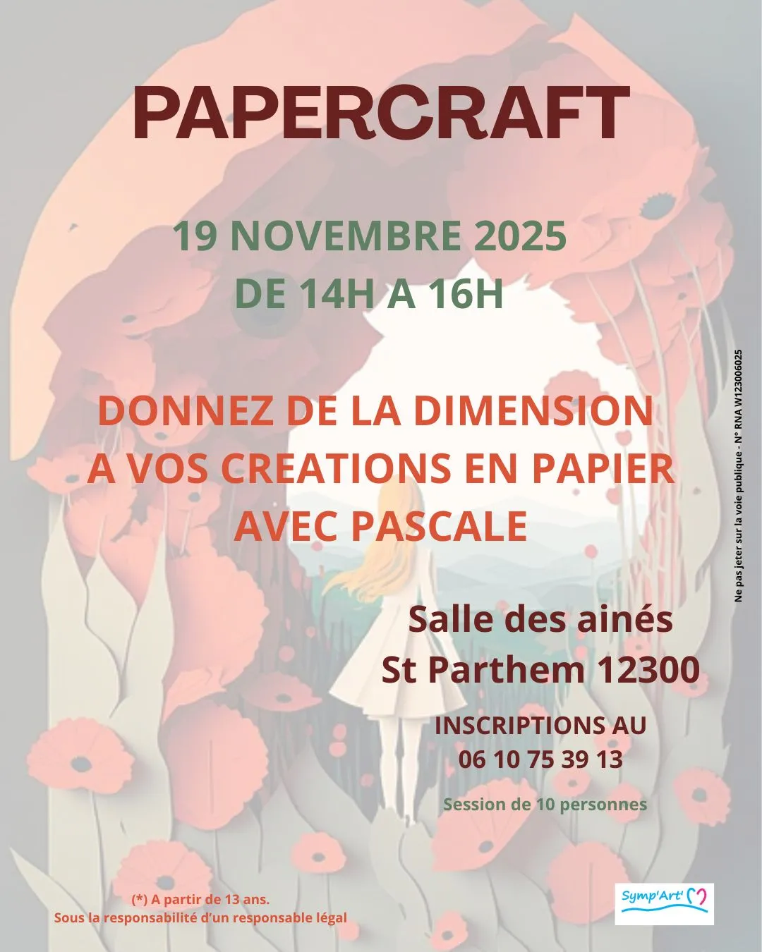 Salle des aînés de 14h à 16hChacun peut venir avec son matériel, des fournitures sont également disponibles sur place. Limité à 10 participants. Dès 13 ans (sous la responsabilité d’un adulte).Inscription obligatoire asso Symp’Art’m 06 10 75 39 13