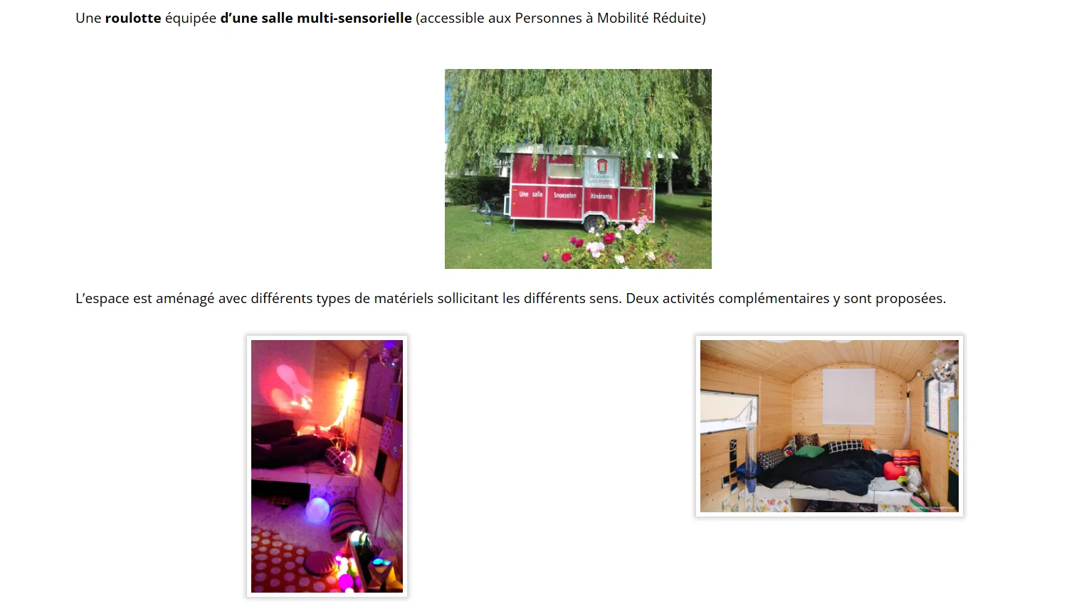 La roulotte Snoezelen est un espace aménagé dans lequel petits et grands vont pouvoir découvrir, explorer tout leur sens en totale déconnexion avec l'extérieur.