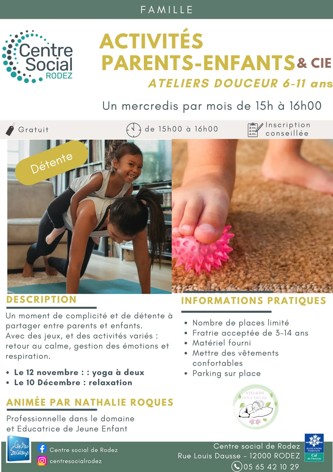 Un moment de complicité et de détente à partager entre parents et enfants. Avec des jeux, et des activités variés : retour au calme, gestion des émotions et respiration.