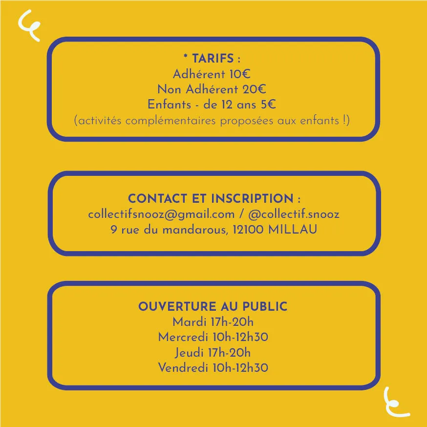 mail : collectifsnooz@gmail.com / réseau : @collectif.snooz / 9 rue du mandarous, 12100