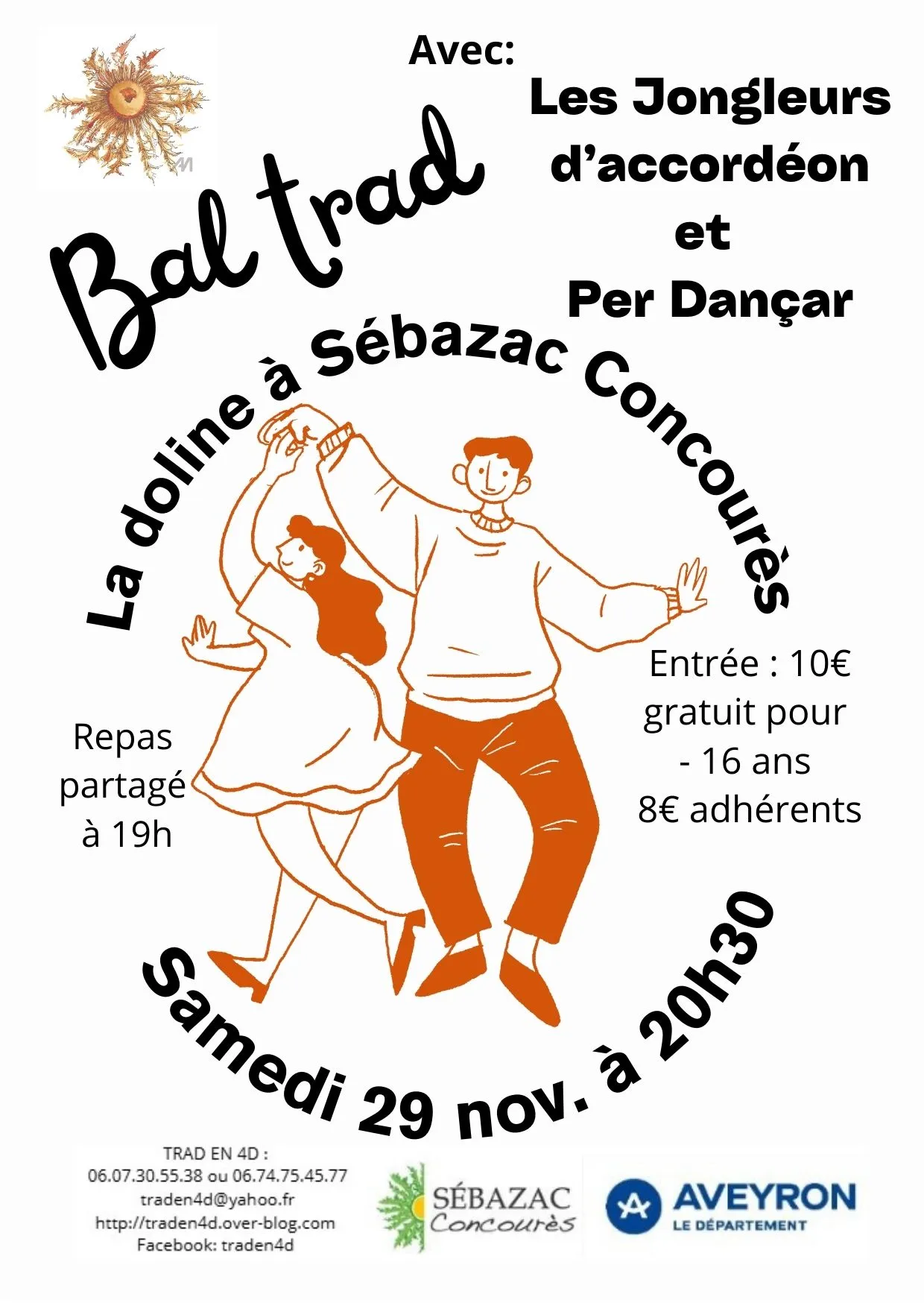 C’est un nouveau Bal trad auquel l’association Trad en 4d vous invite, samedi 29 novembre à 20h30 à la Doline à Sébazac. C’est ouvert à tous, grands et petits danseurs, seul ou en couple.