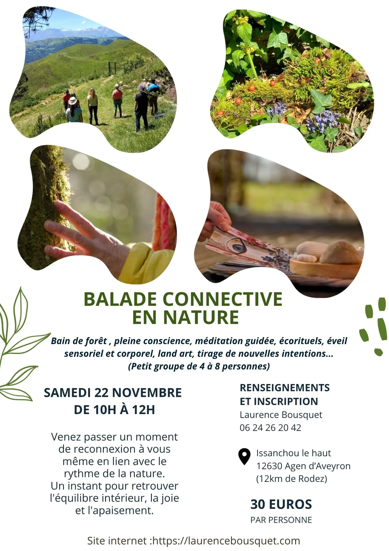 10h à 12h - Issanchou le Haut. Bain de forêt, pleine conscience, méditation guidée, éco rituels, éveil sensoriel, land art. Animé par Laurence Bousquet, Enseignante spécialisée, Psychopédagogue, Eco thérapeute. 30€ sur réservation au 06 24 26 20 42.