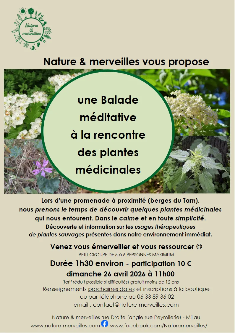 Balade à la rencontre des plantes médicinales - Nature et MerveillesNature et Merveilles - Muriel Pujolrue Droite à l'angle avec le 2 rue Peyrollerie lat. 44.0984 - lon. 3.07771 Obtenir l'itinéraire