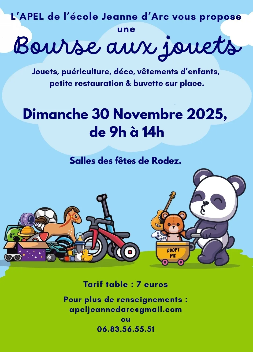Bourse aux jouets par l'APEL Jeane d'Arc Rodez, à la salle des fêtes.