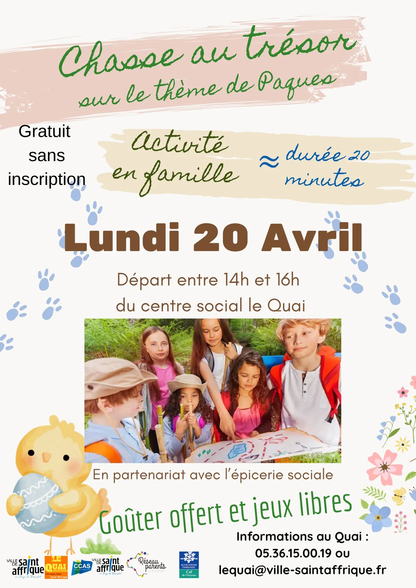 Le centre social Le Quai, en partenariat avec le CCAS de la ville, vous invite à une chasse au trésor sur le thème de Pâques !