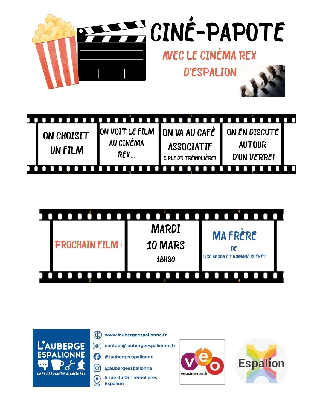 Le principe? On visionne un film au Cinéma et à la sortie, on en discute ensemble au Café de L'Auberge espalionne, 5 rue du Dr Trémolières.