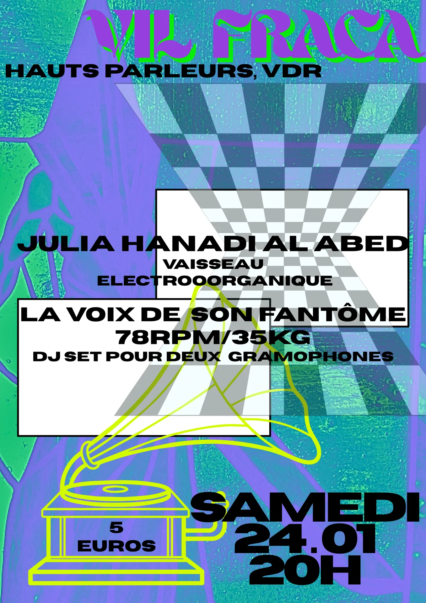 VIL FRACA accueille Julia Hanadi, avec joie, pour son projet solo du même nom, ainsi que son acolyte Laurent Tixador, qui joueront ensemble La voix de son fantôme. Tamara cuisinera des Tourtes russes, les « pirog », à la pomme de terre, et au chou!