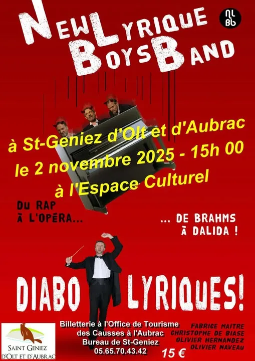 Rendez-vous dimanche 2 novembre, 15h à l ‘espace culturel de St-Geniez d’Olt et d’Aubrac pour un concert du groupe "Le New Lyrique Boys Band".