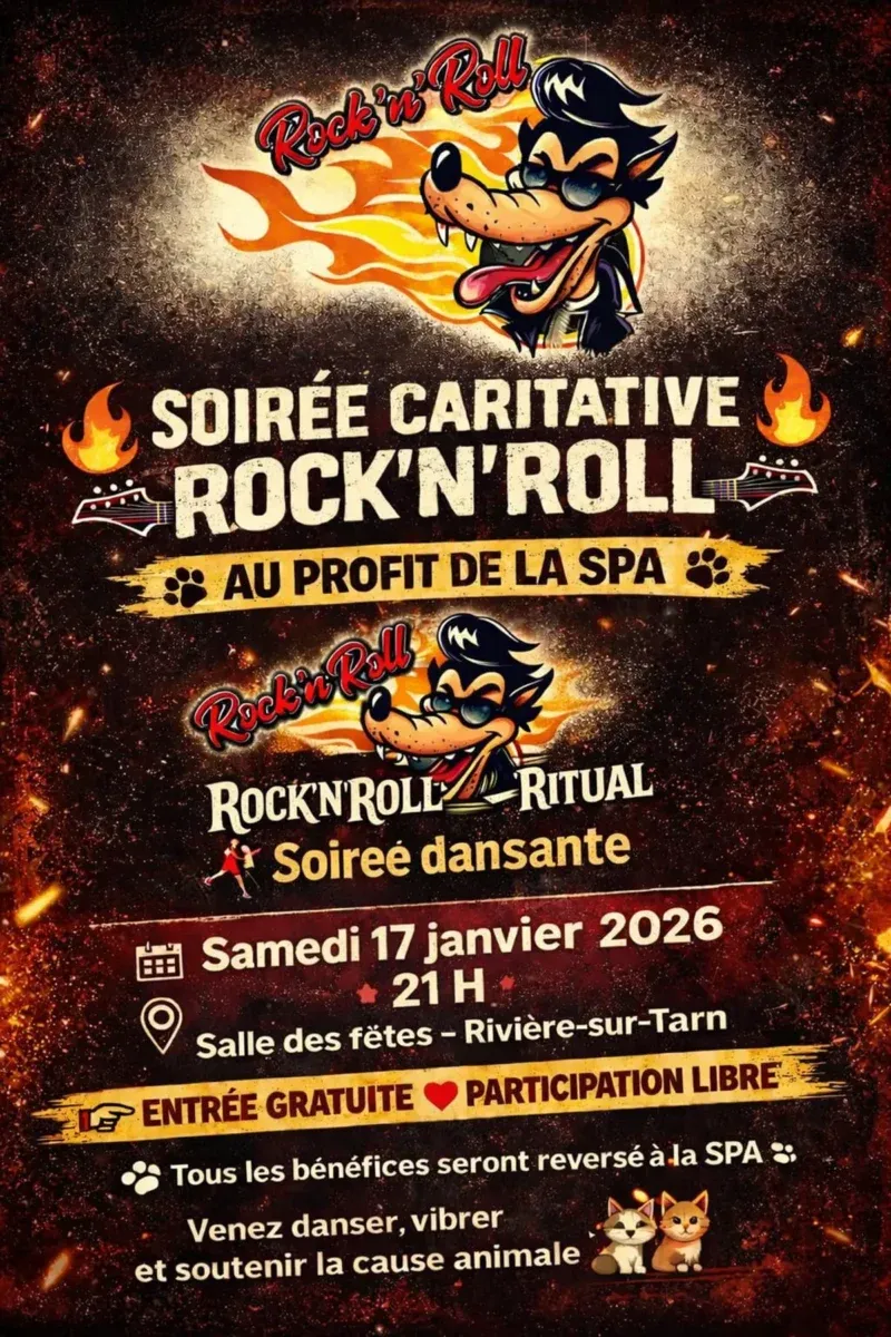 Concerts et vide-grenier caritatifs au profit de la SPASalle des fêtes12640 Rivière-sur-Tarn lat. 44.1889 - lon. 3.13