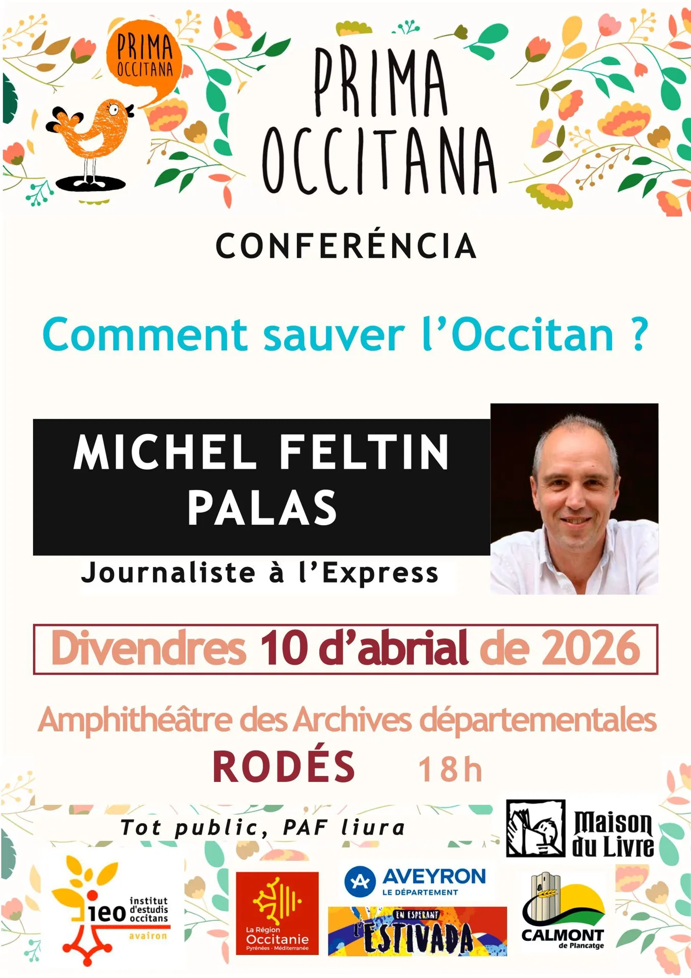 Description longue : Dans le cadre de la Prima occitana, l’IEO12 (Institut d’Etudes occitanes de l’Aveyron) invite Michel Feltin-Palas, grand défenseur des langues régionales.