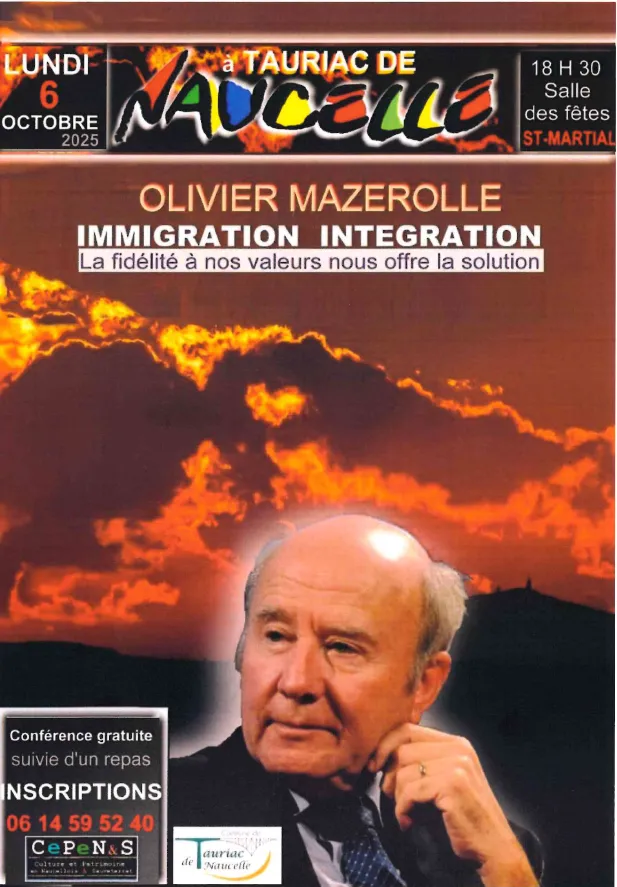 Conférence gratuite avec le journaliste Olivier Mazerolle "immigration intégration : la fidélité à nos valeurs nous offre la solution"