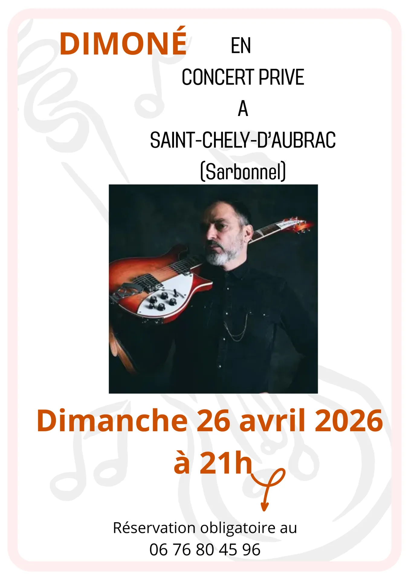 Dimoné en concert privé à St Chély D'Aubrac281 chemin de Sarbonnel12470 Saint-Chély-d'Aubrac lat. 44.5958 - lon. 2.94669 Obtenir l'itinéraire
