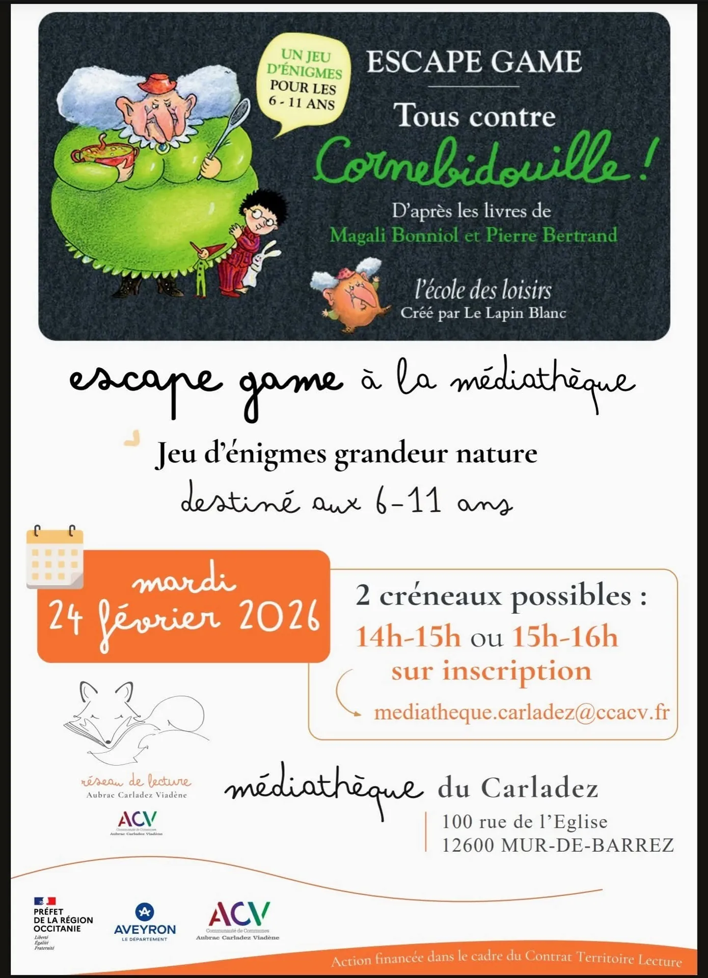 Escape game "Tous contre Cornebidouille"100 rue de l'église12600 Mur-de-Barrez lat. 44.8448 - lon. 2.66057