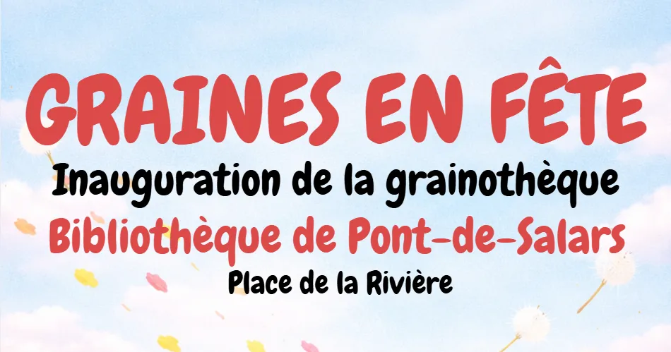 10h à 18h - Place de la Rivière (Salle des fêtes si mauvais temps). Jeu de piste, fabrication de sirops à l'occasion de l'inauguration de la grainothèque… et bien d’autres ateliers pour petits et grands ! Info Bibliothèque au 05 65 74 34 73.