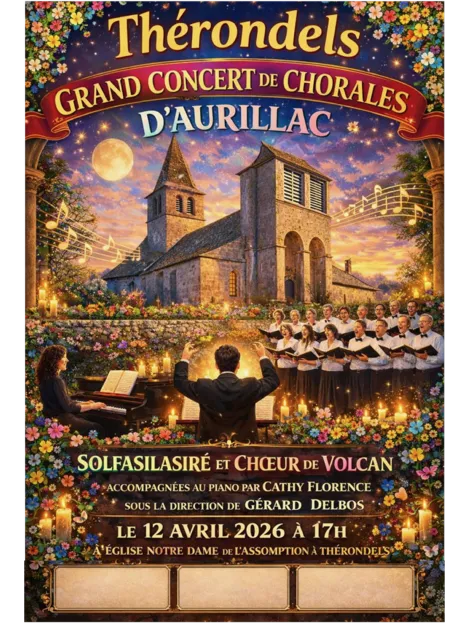 Les chorales Solfasilasiré et Choeur de Volcan vous invitent à l'église de Thérondels pour les (re)découvrir accompagnées au piano par Cathy Florence et sous la direction de Gérard Delbos.
