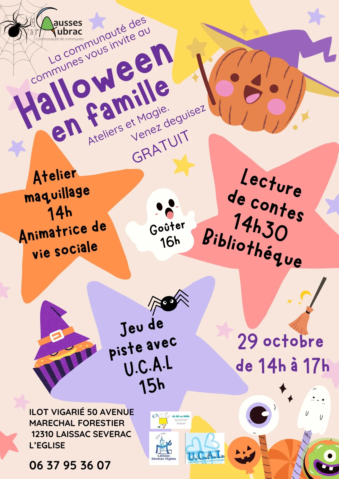 Venez fêter halloween en famille à Laissac de 14h à 17h . Au programme : Maquillage, lecture de conte, jeux de piste. Inscription obligatoire : 06 37 95 36 07 ou alexia.clavel@caussesaubrac.fr