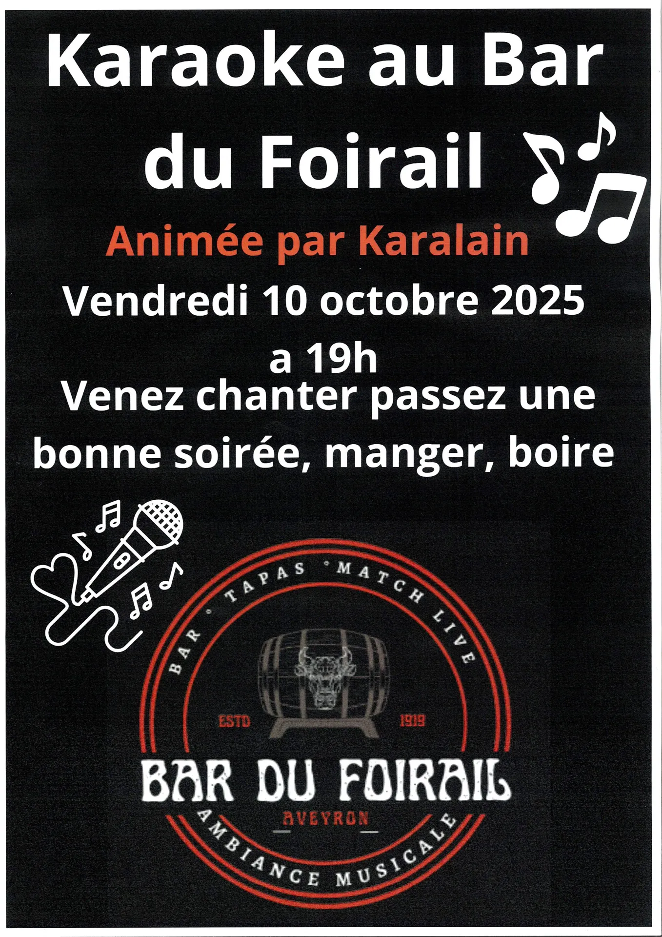 Soirée Karaoké au bar du Foirail animé par Karalain. A partir de 19h, venez chanter passez une bonne soirée, manger, boire.