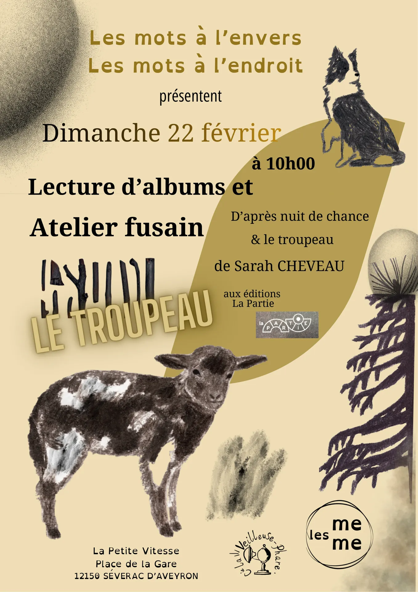 Découvrez la technique du fusain pour dessiner les animaux de troupeaux et la nature environnante grâce aux albums de Sarah Cheveau "Nuit de chance" et "Le troupeau". Atelier suivi d'une dégustation de fromage de brebis du GAEC de la Carayrade.