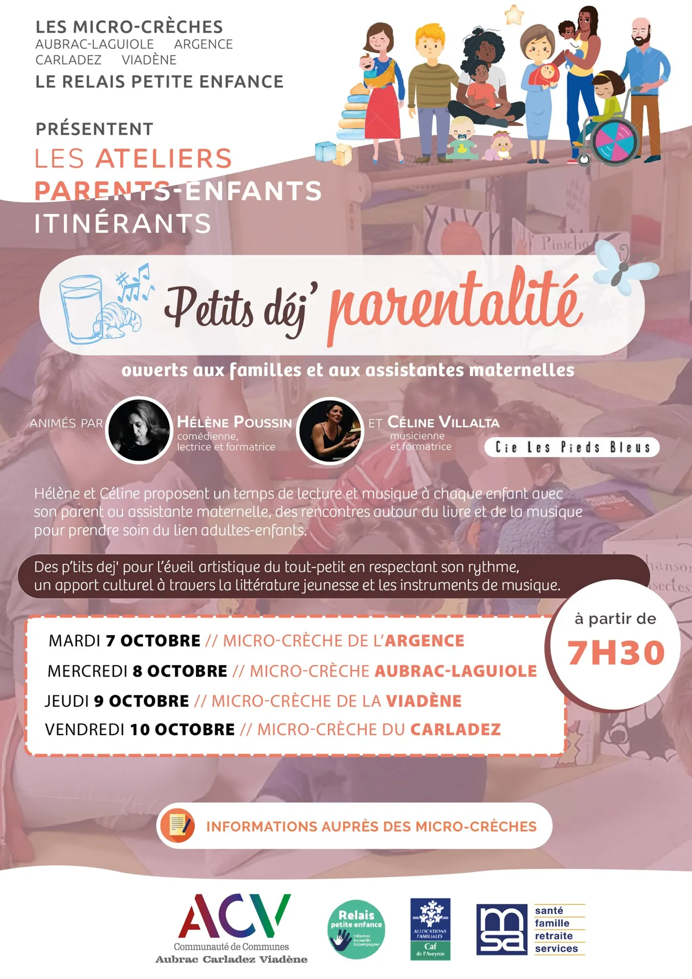 à partir de 7h30 Hélène et Céline proposent un temps de lecture et musique à chaque enfant avec son parent/ assistante maternelle, des rencontres autour du livre et de la musique pour prendre soin du lien adultes-enfants