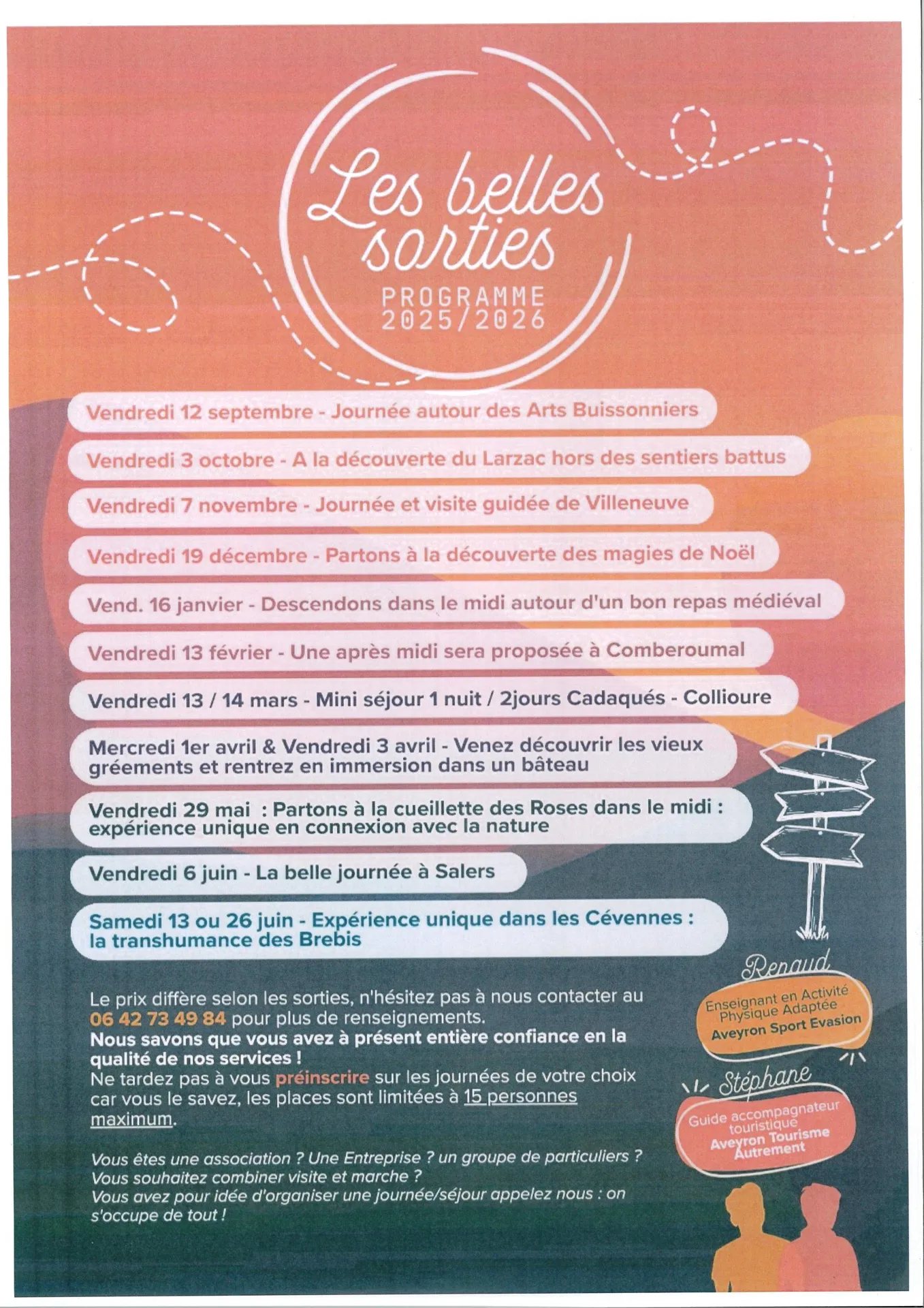 Au départ du Foirail de Laissac, "Aveyron Tourisme Autrement" vous propose de partir à la journée. Au programme convivialité, bienveillance et visites guidées rythmeront votre journée ! Programme ci dessous.