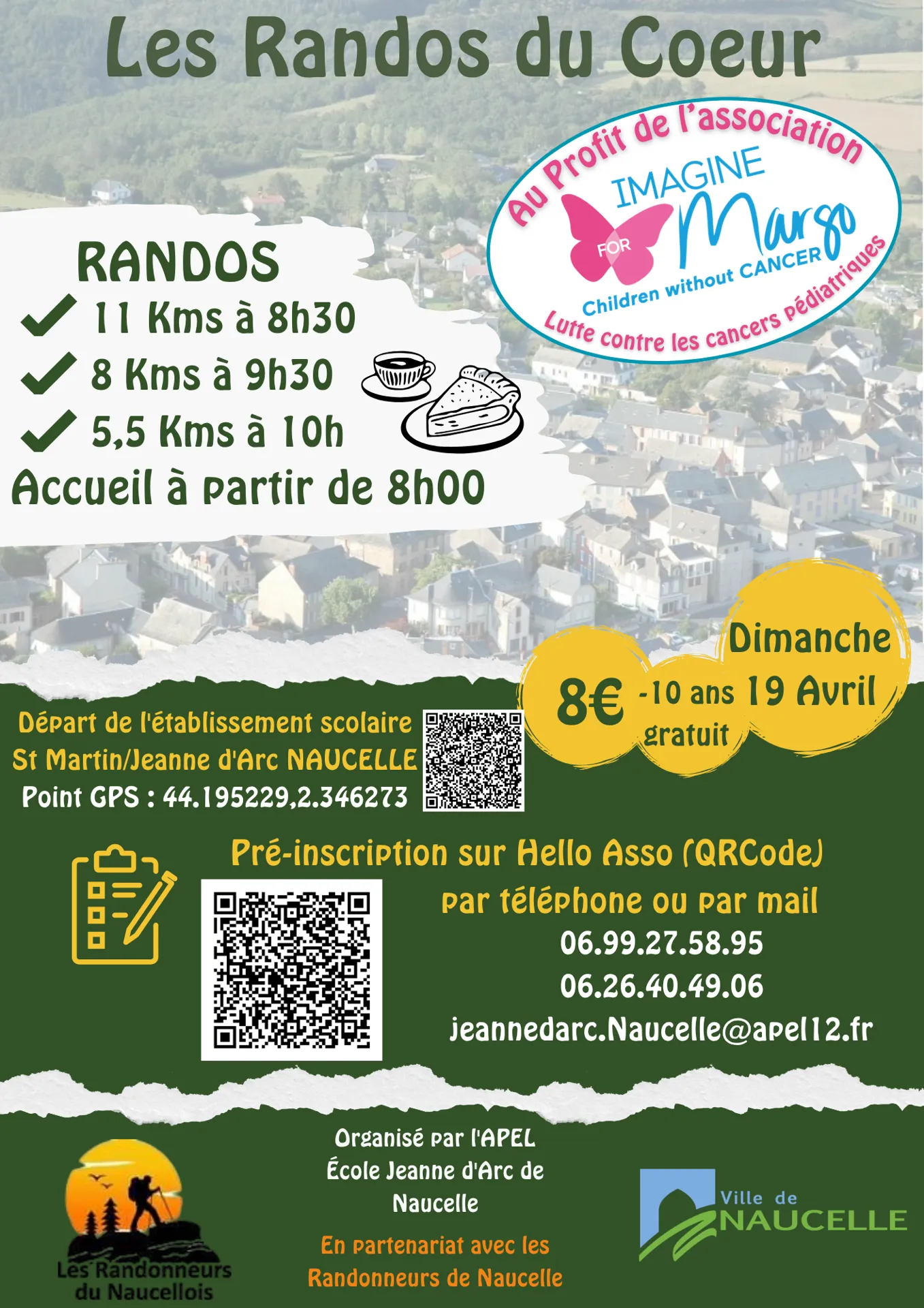 Organisé par l'APEL École Jeanne d'Arc de Naucelle en partenariat avec les Randonneurs de Naucelle. Au profit de l'association "Imagine for Margo children without Cancer" qui lutte contre les cancers pédiatriques.
