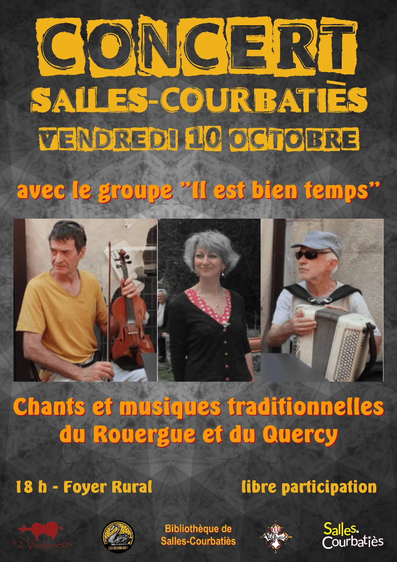 Concert du groupe "il est bien temps" sur le thème "Chants et musiques du Rouergue et du Quercy" (libre participation)