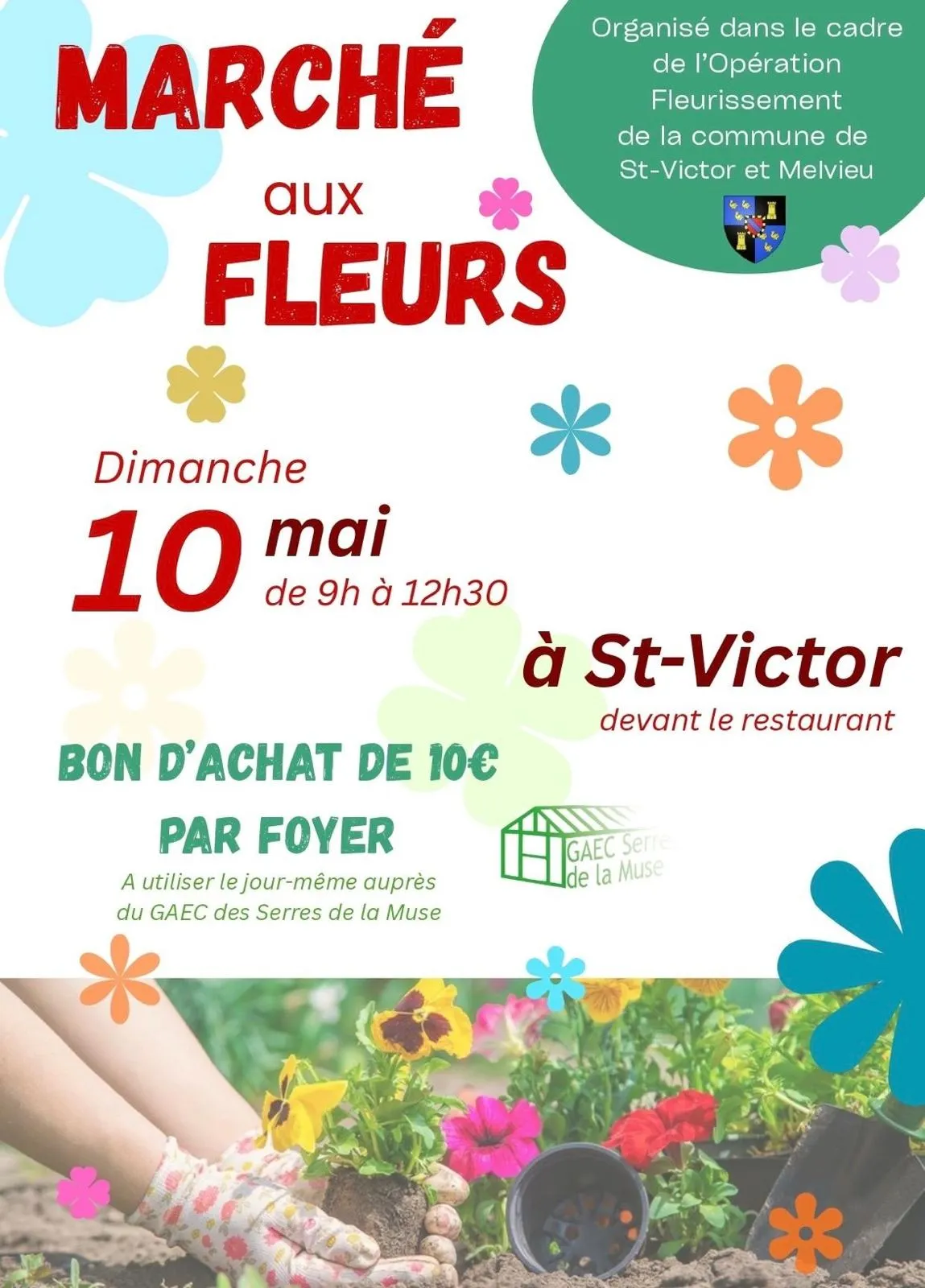 Organisé dans le cadre de l'Opération Fleurissement de St-Victor et Melvieu, ce marché se tiendra devant le restaurant.